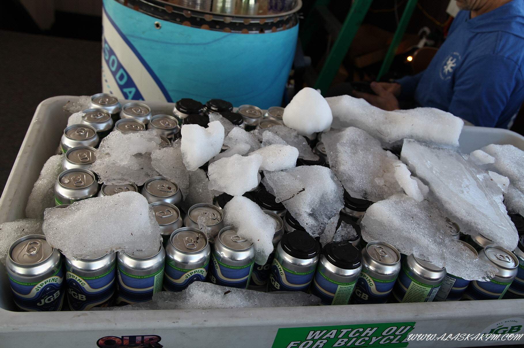 주변의 얼음을 가져다가 맥주를 시원하게 해 놓았네요.