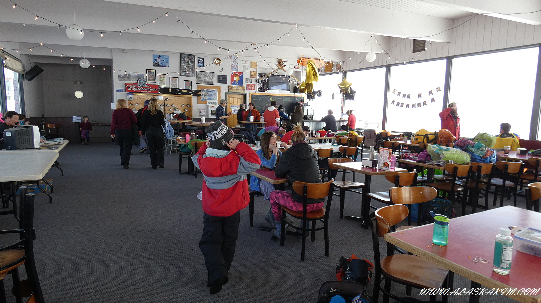 타는 스키어들을 바라보면서 한 없는 평안함과 휴식을