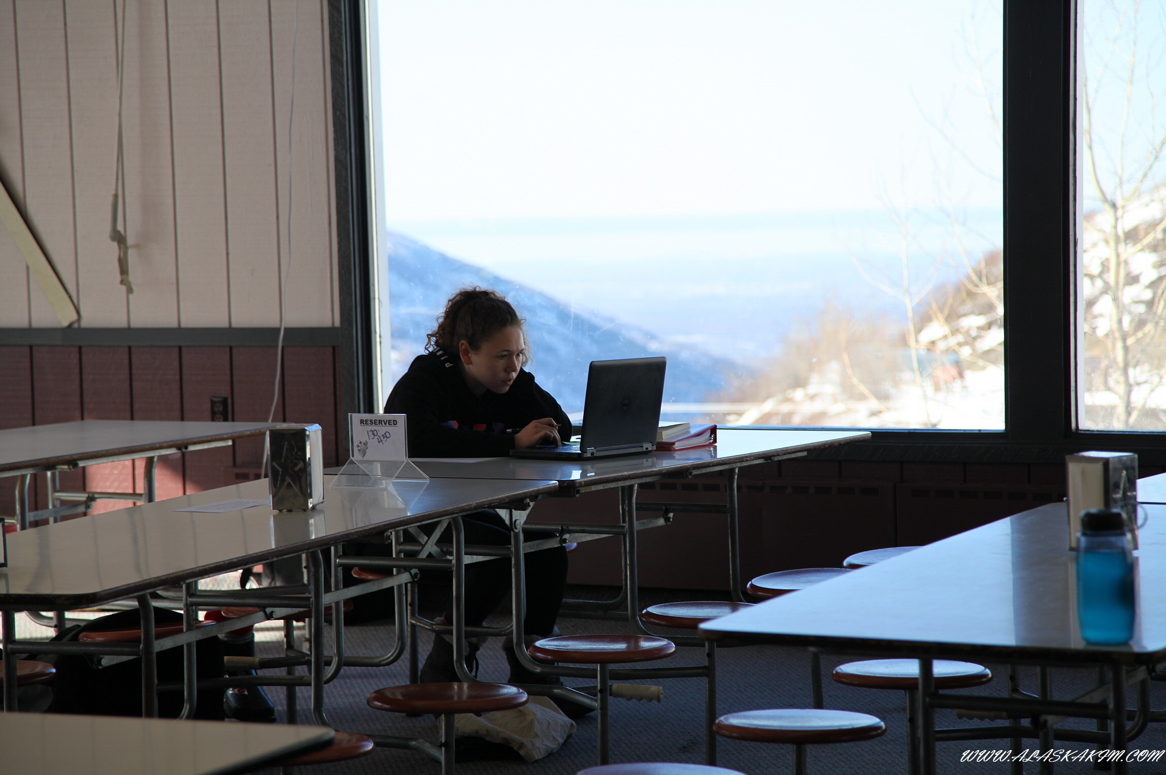 타는 스키어들을 바라보면서 한 없는 평안함과 휴식을