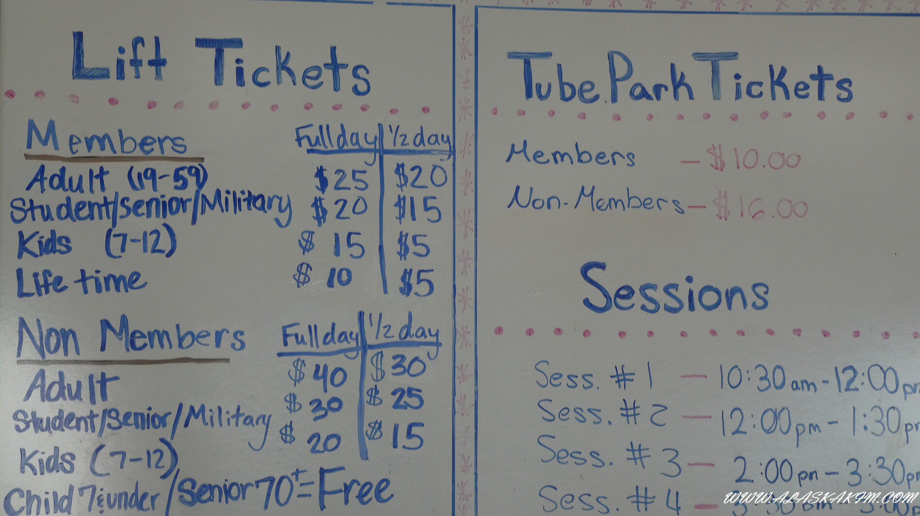스키장 요금표입니다.