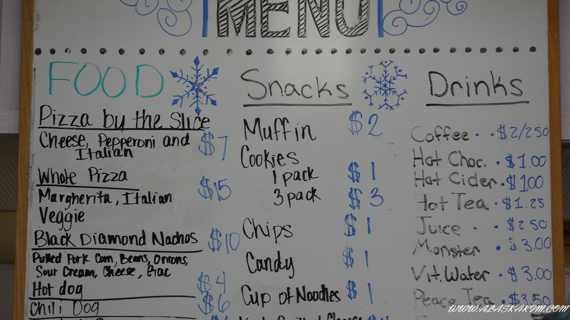 여기 매점 메뉴판입니다.