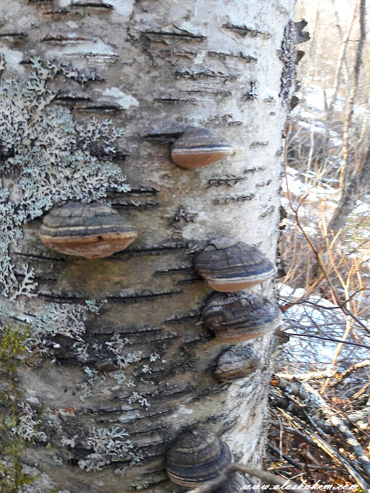 자작나무에서 자라나는 차가버섯과 상황버섯 그리고,