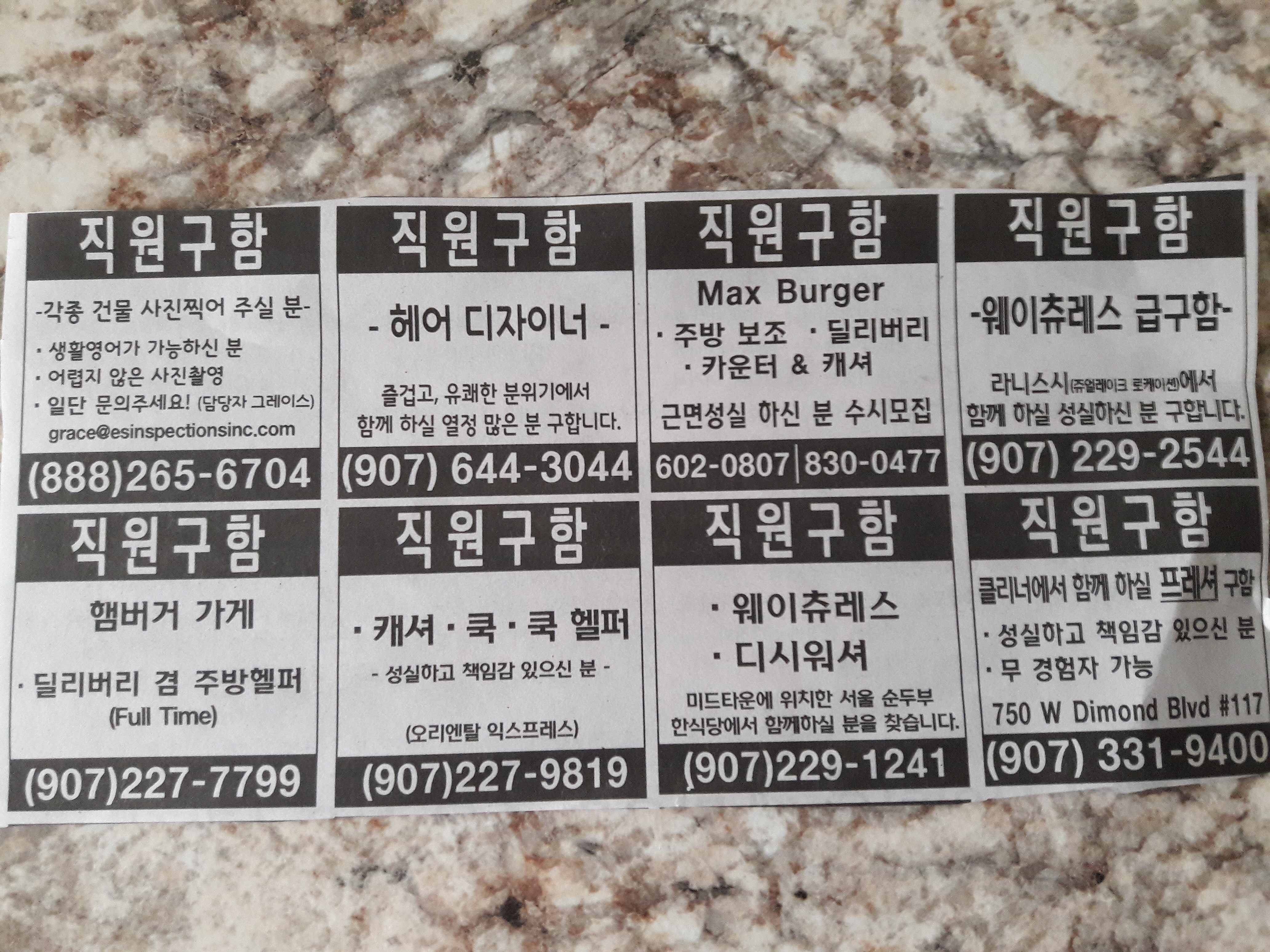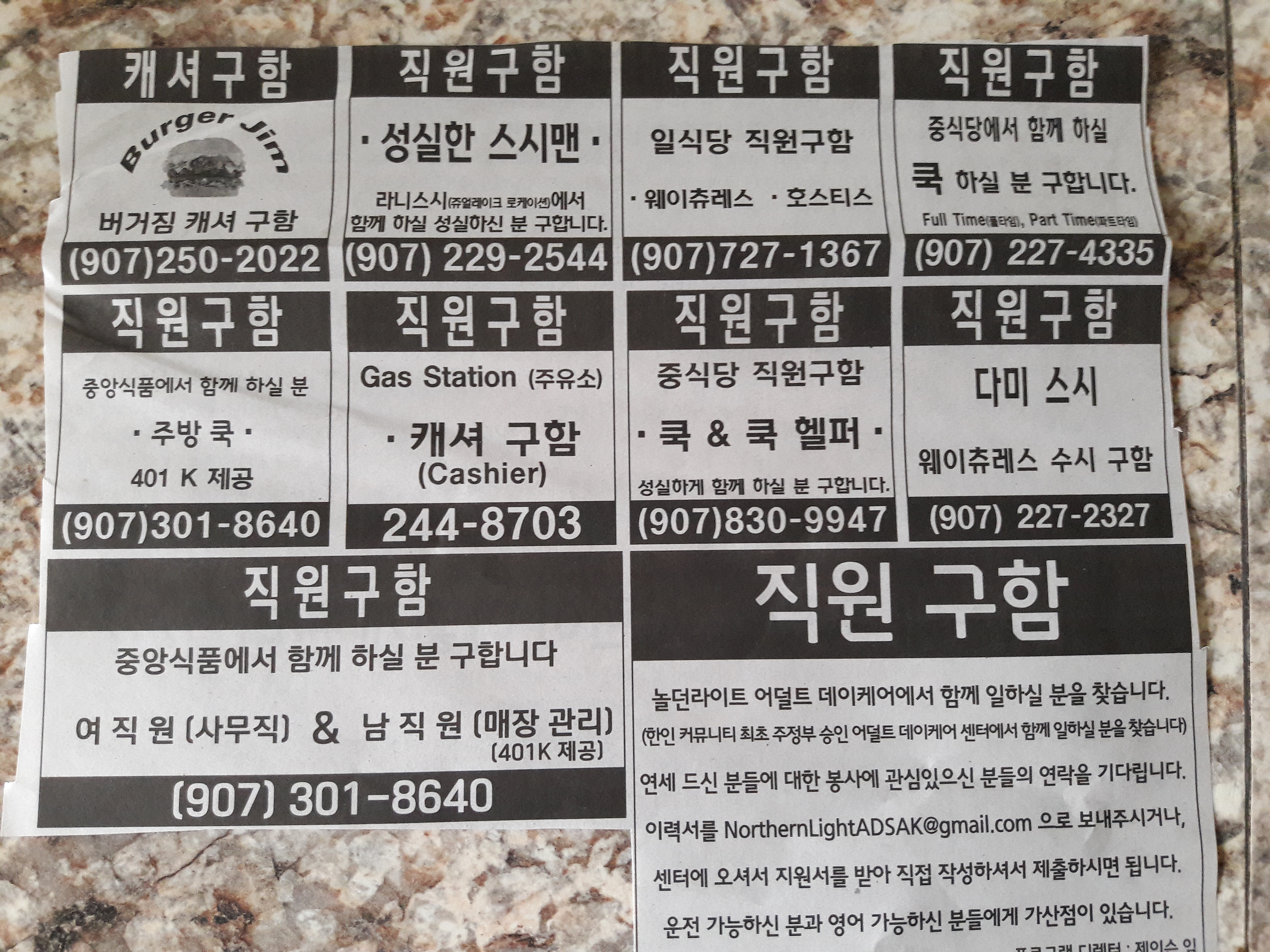이번주 구인과 구직 정보입니다.