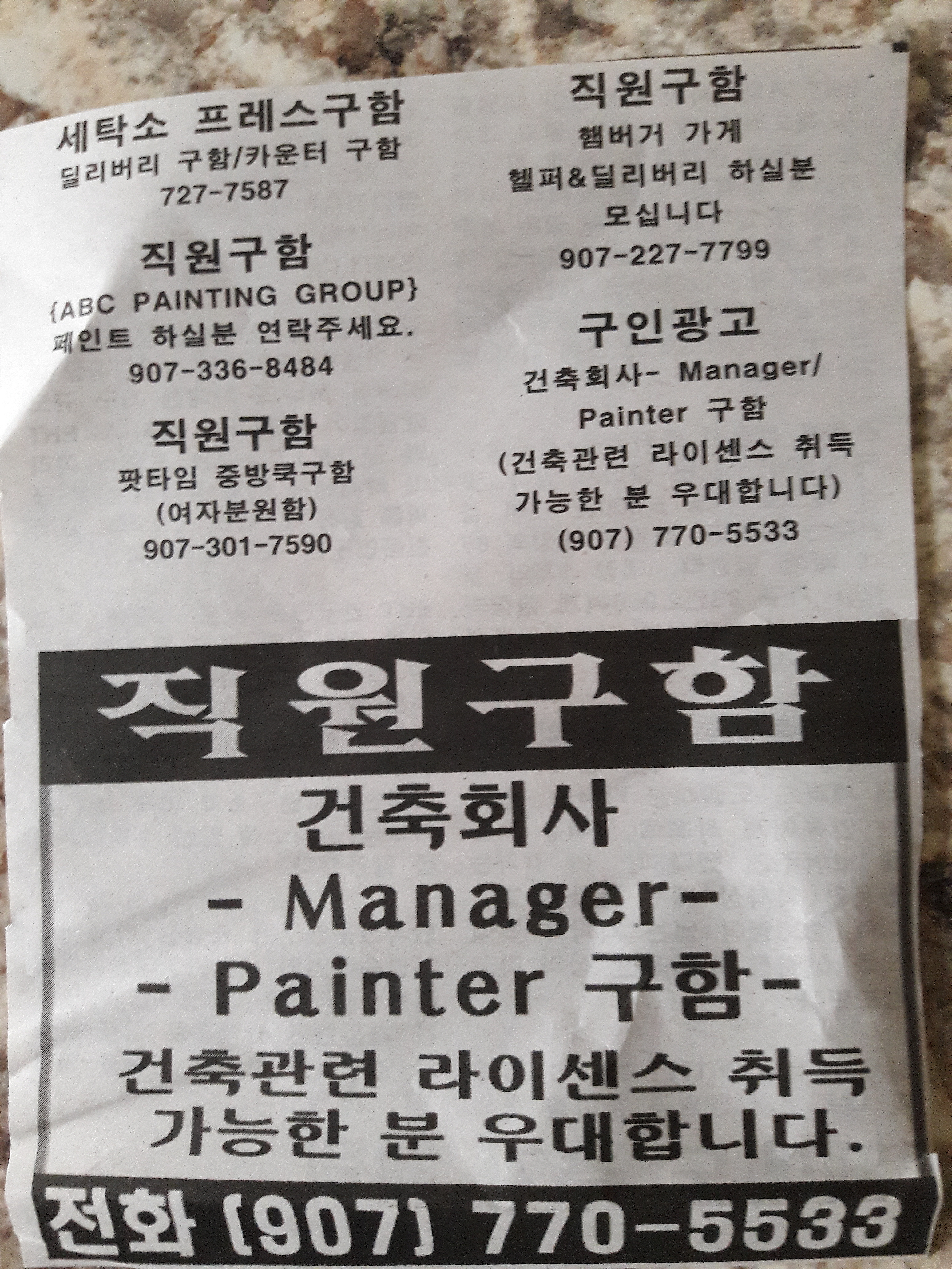 이번주 구인과 구직 정보입니다.
