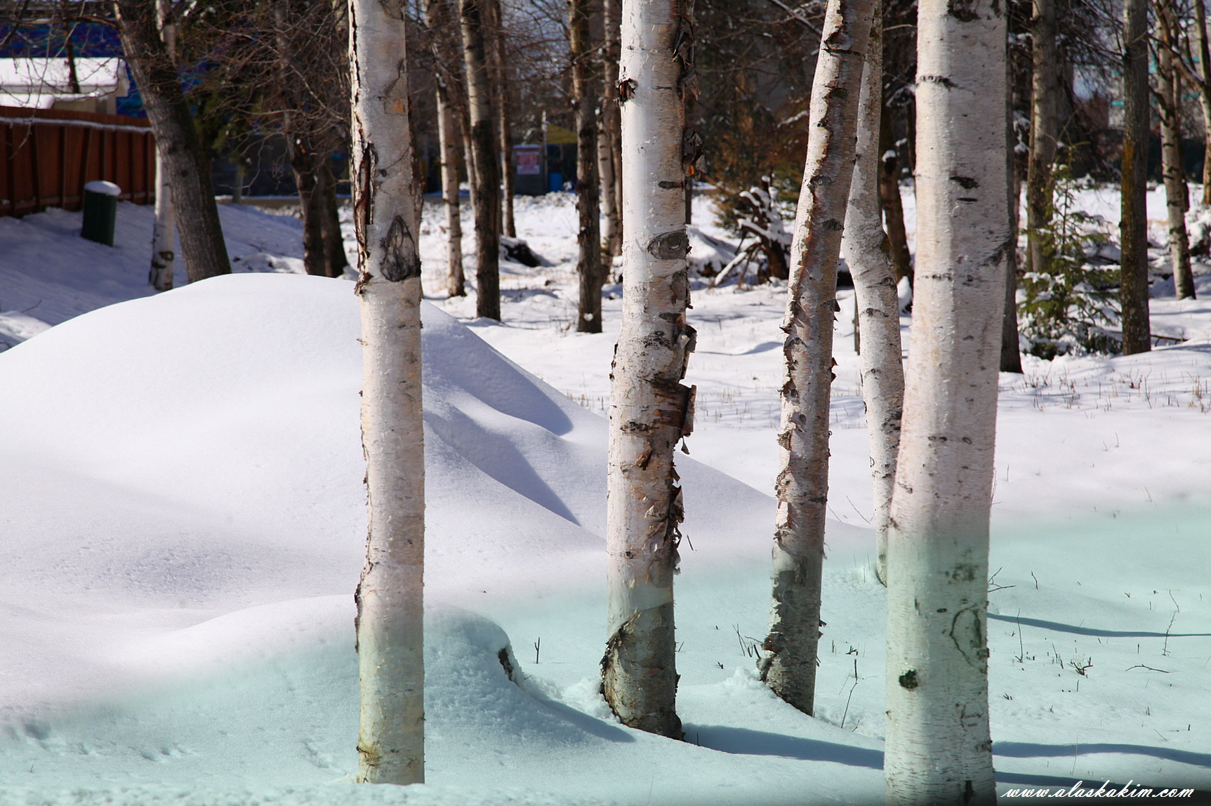 눈에 쌓인 자작나무가 너무 보기 좋네요.