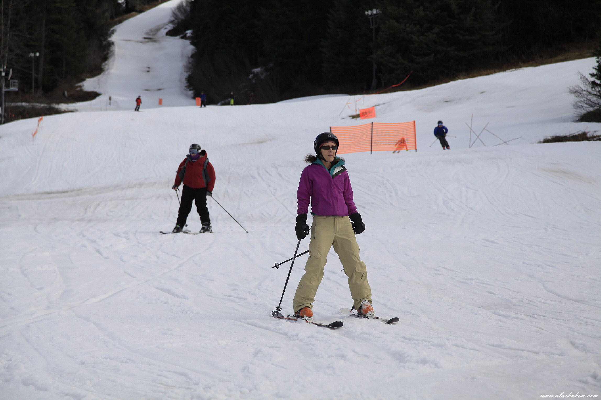 봄날에 내린 눈으로 스키장의 수명이 다소 늘어나니,