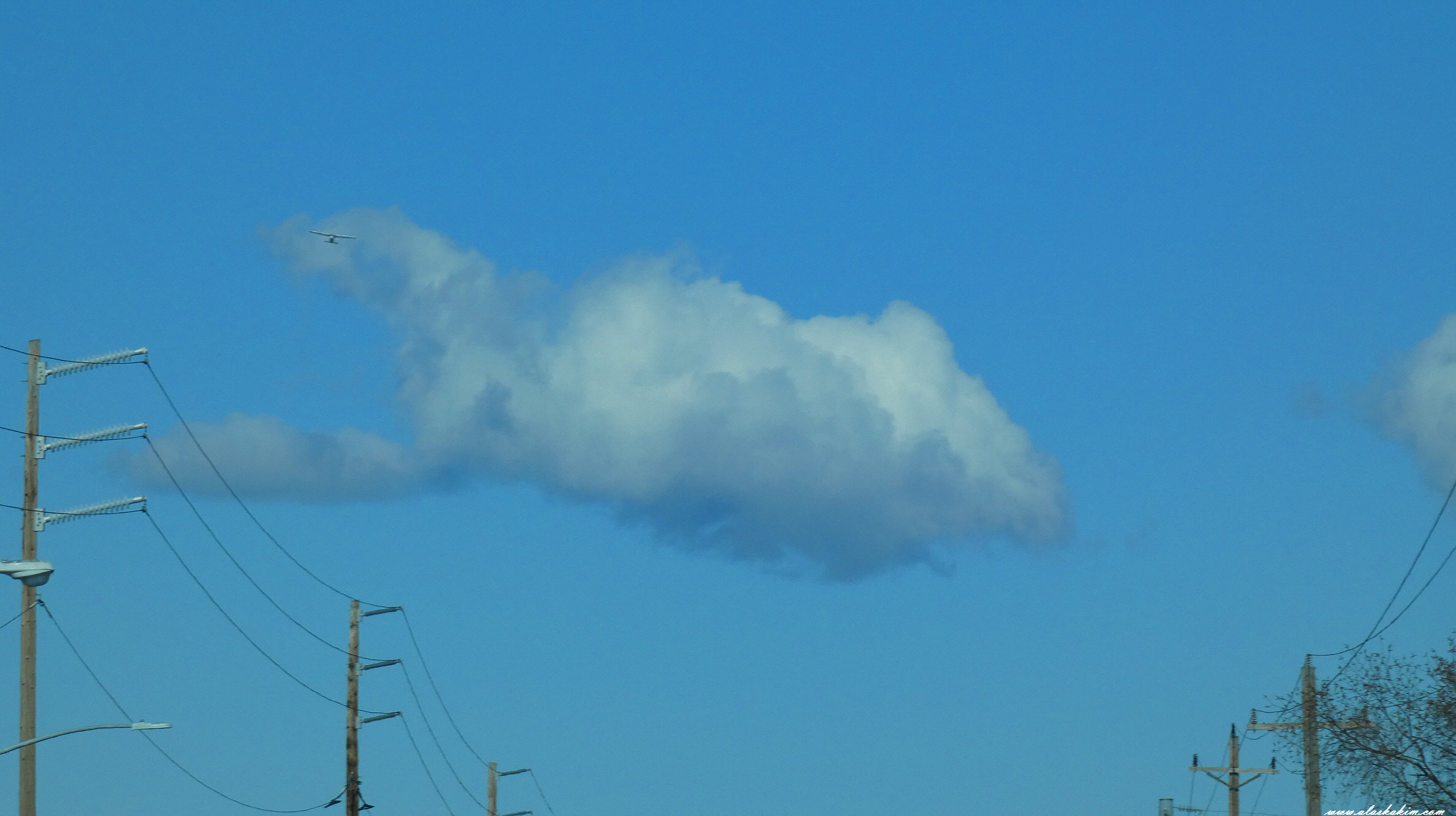 마치 금붕어 구름 꼬리에 경비행기 한대가 스며듭니다.