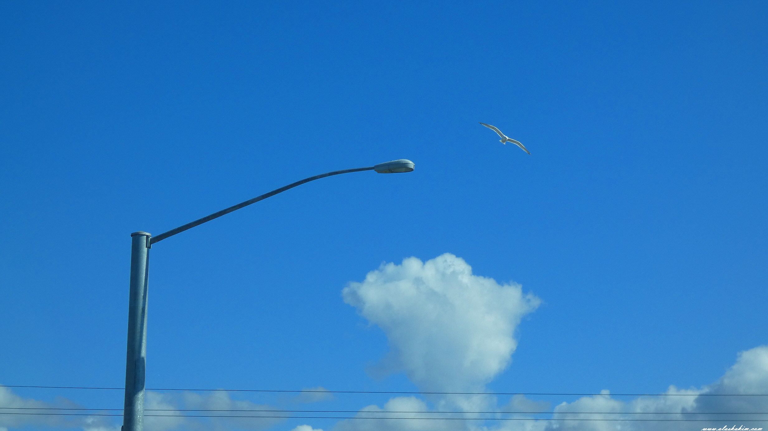 갈매기 한 마리가 창공을 날아다닙니다.