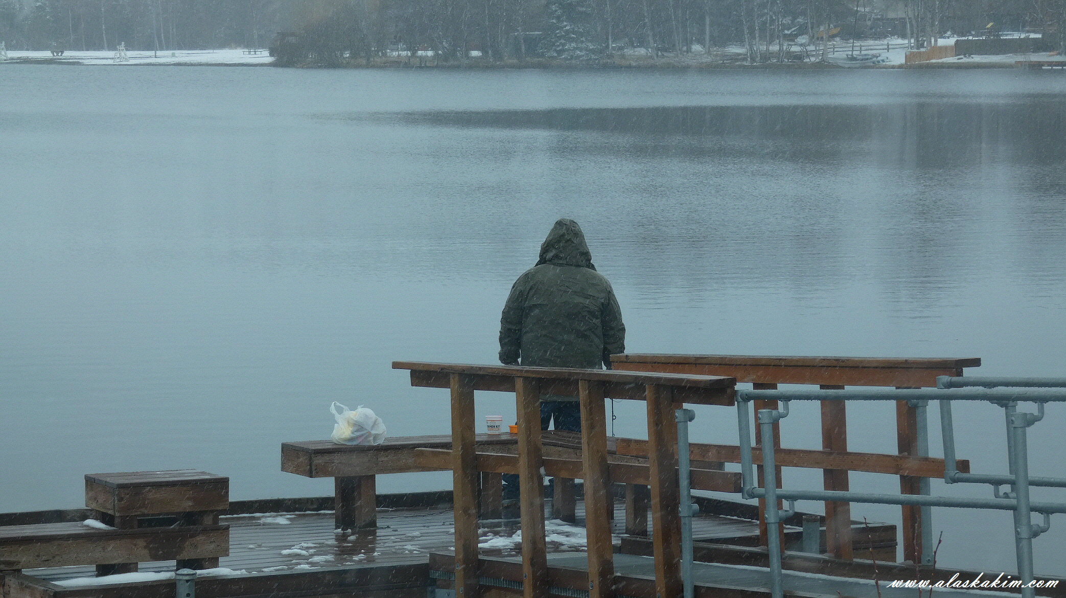 내리는 눈을 맞으며 낚시를 하는 사람이 있더군요.