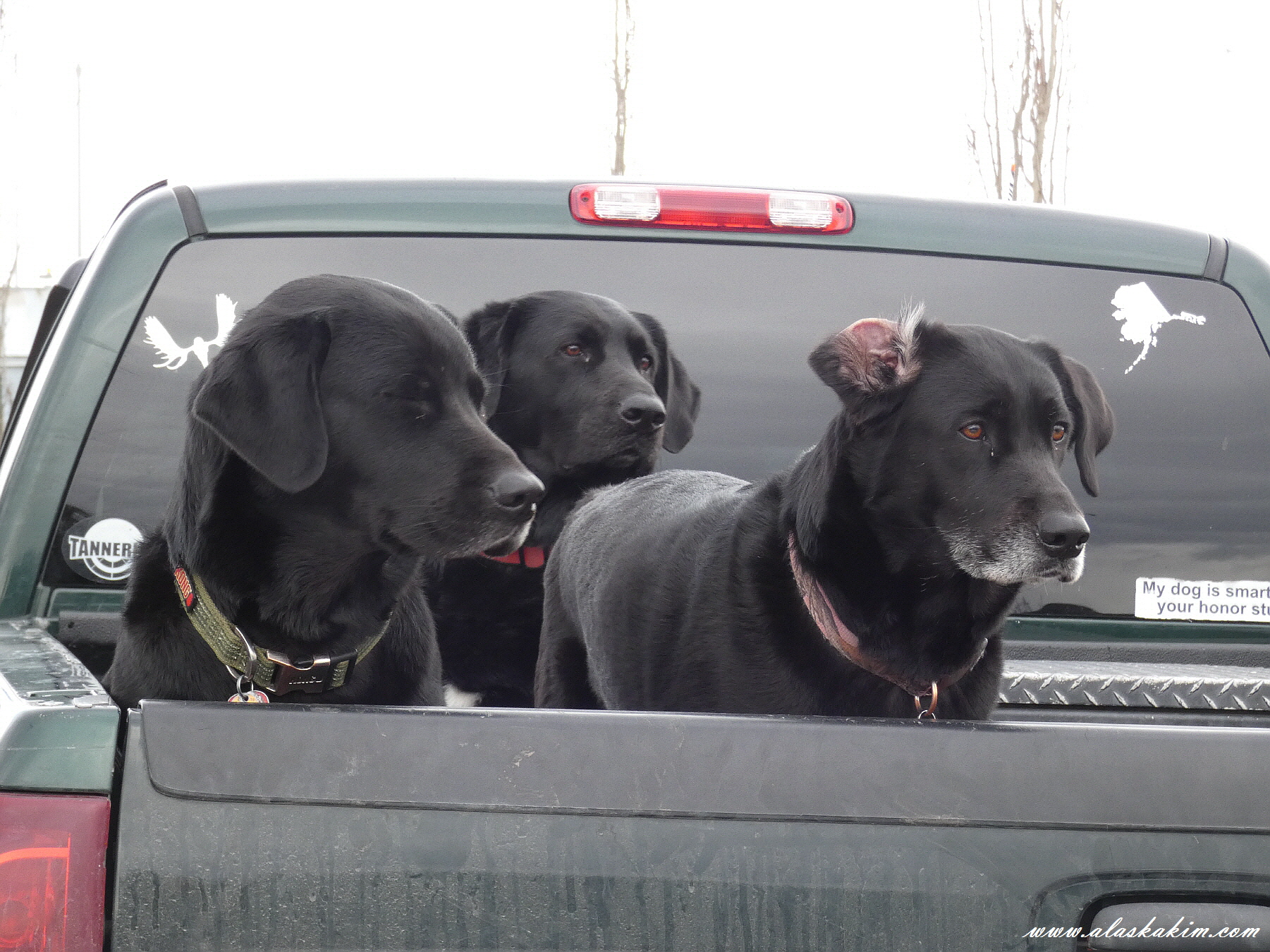 같은 종의 개들 세 마리가 타고 있는 걸 보니,