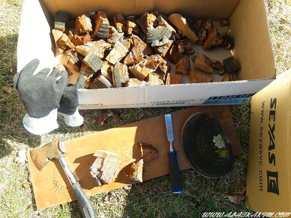 도끼와 정을 이용해 쪼개고 있는데 , 완전 중노동입니다.