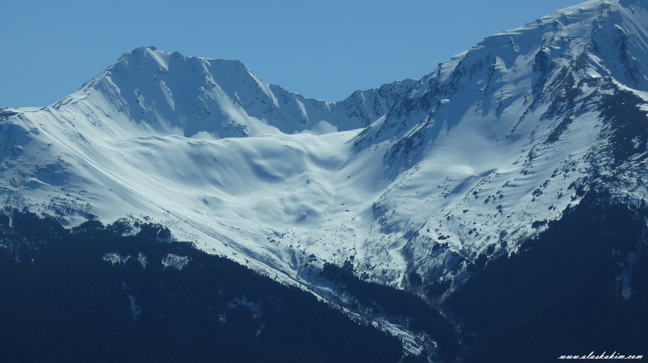설산의 계곡 사이로 눈들이 흘러내려 마치 물줄기처럼 보이지만,