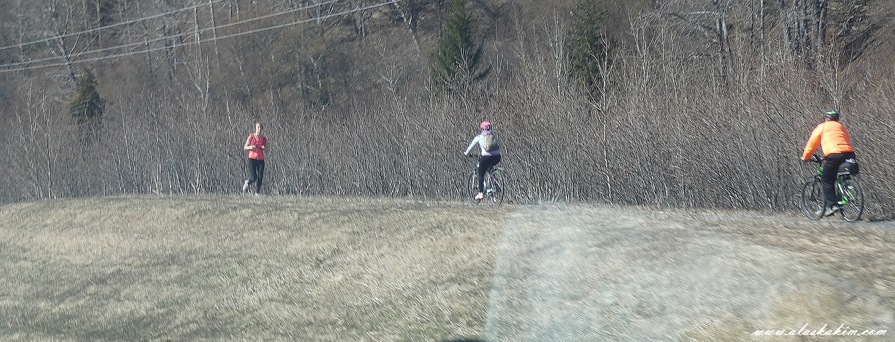 야외에 차를 세우고 저렇게 조깅도 하고 자전거를 타는 이들을