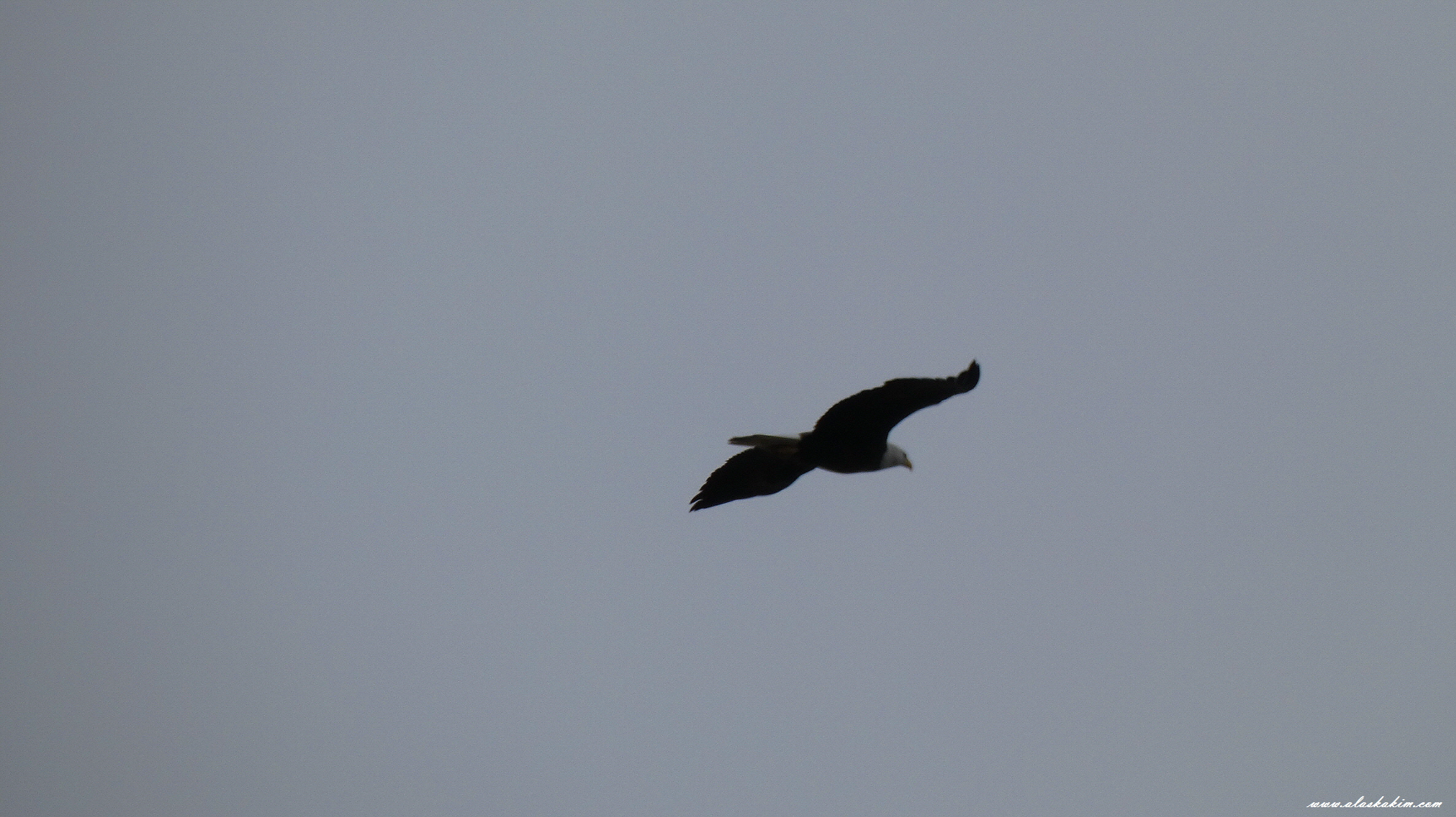 잠시 쉬고 있는데 흰머리 독수리 한 마리가 머리 위를 맴돕니다.