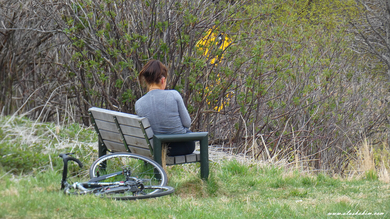 자전거를 세워놓고 셀폰 삼매경에 빠진 미모의