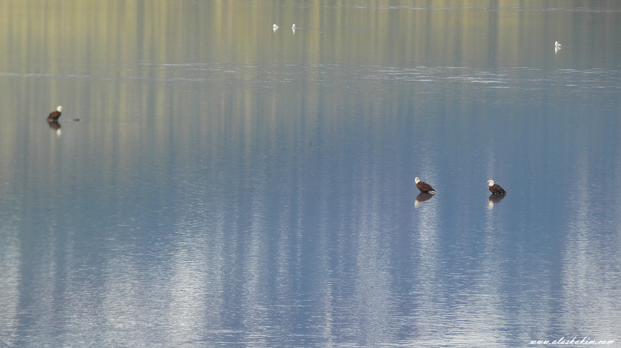 저 물길을 따라 훌리건이 산란을 하기 위해 올라오는 중이라 독수리들이