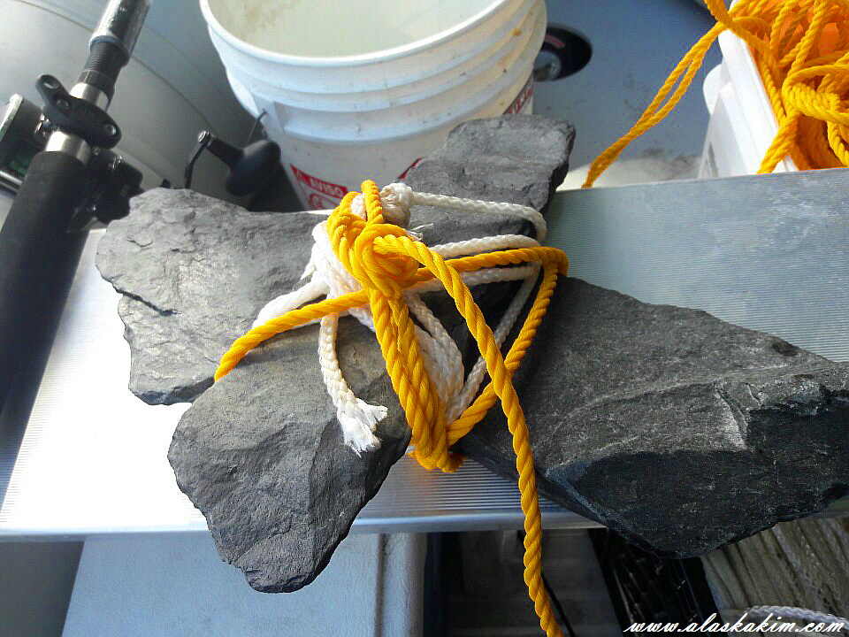 두 개의 돌을 단단히 묶어 닻으로 이용을 했는데, 걸림이 없어