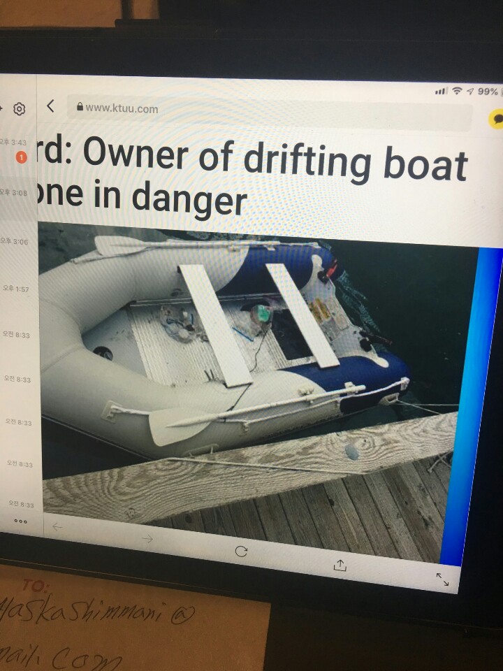 TV 뉴스에 나온 제 보트 사진을 보고 당황을 했습니다.