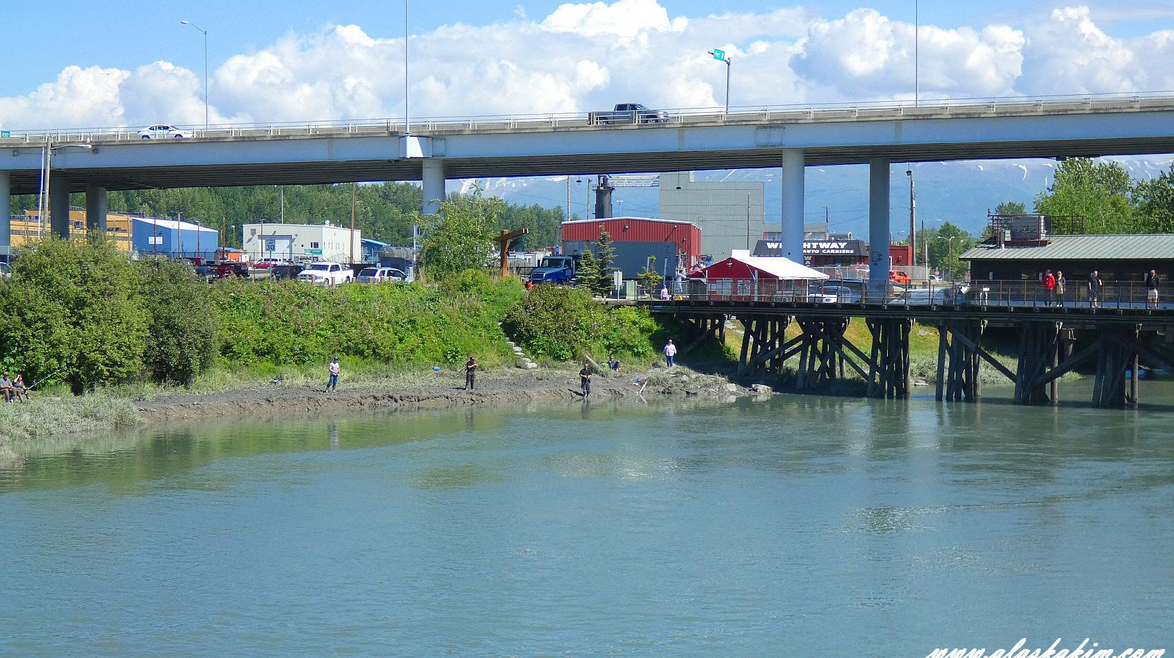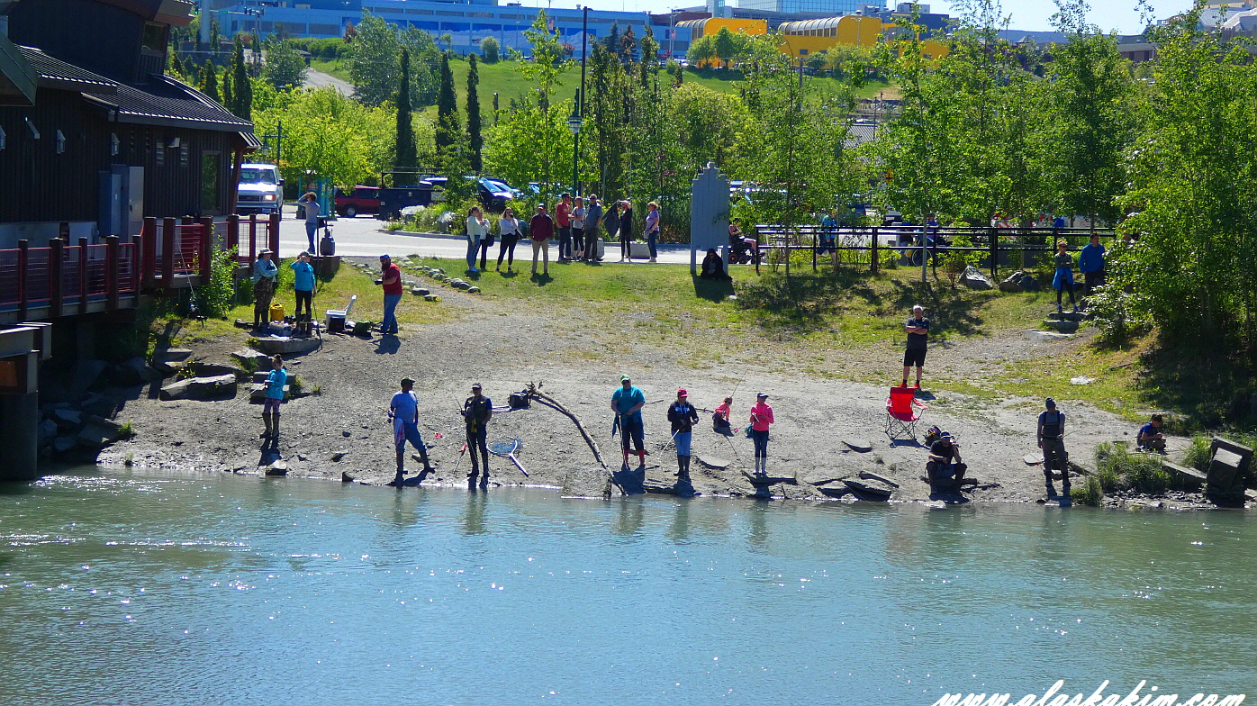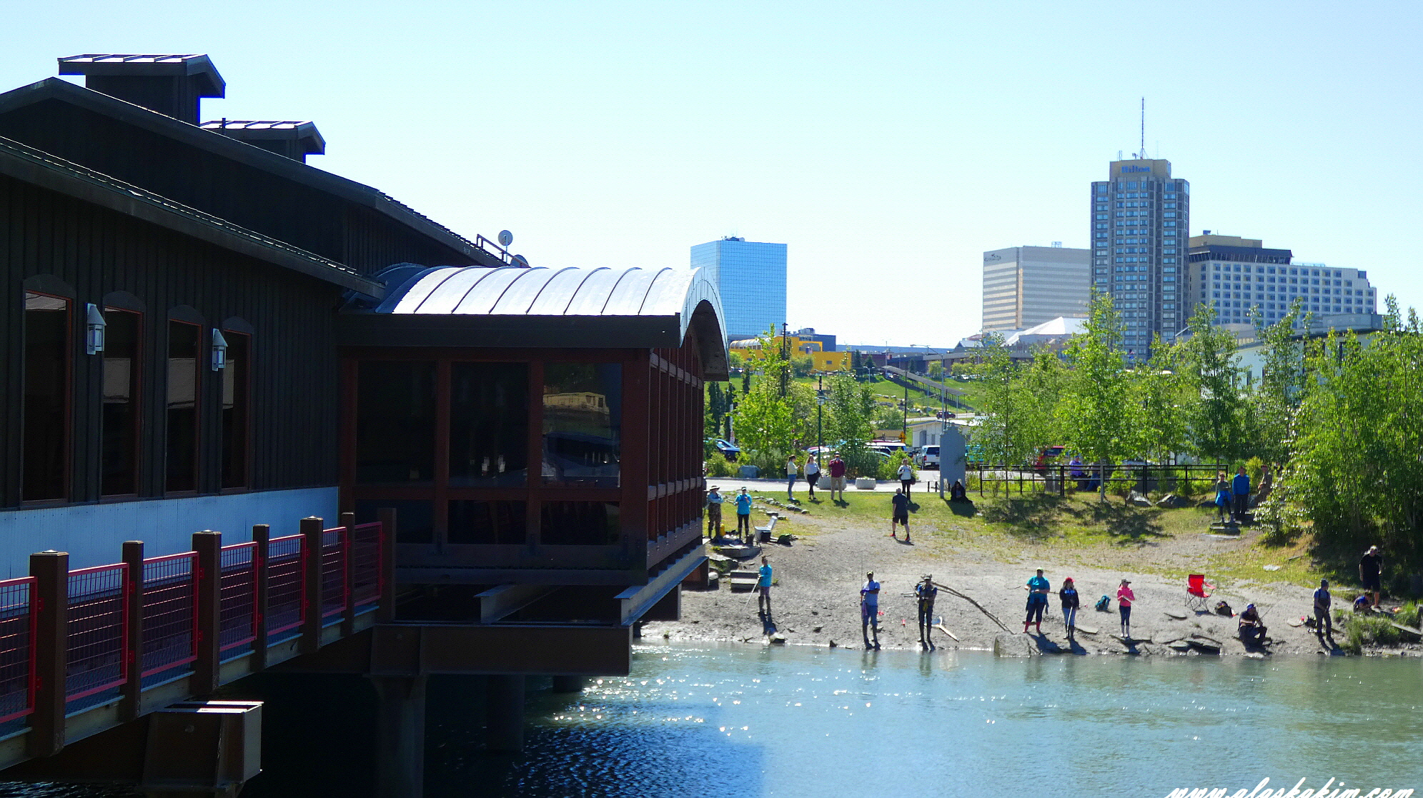 오늘은 앵커리지 다운타운 Ship Creek을 찾아 왕연어를 잡는 강태공들을