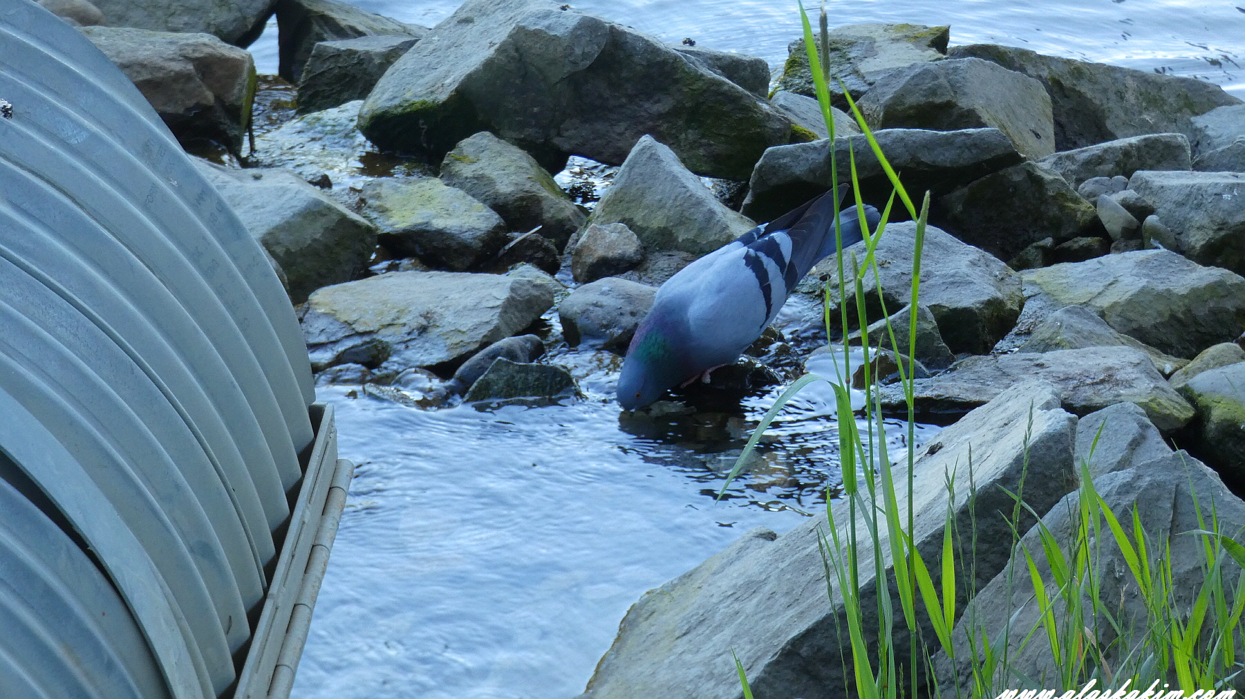 제 앞에 눈 녹은 물이 흘러나오는데, 그 물을 비둘기 한 마리가