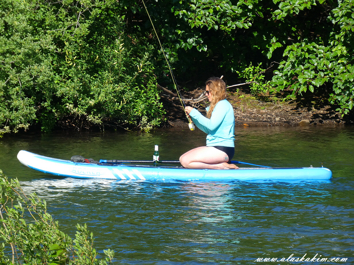 시원한 맥주 한잔 하면서 서퍼도 즐기고 송어 낚시도 하고 있습니다.