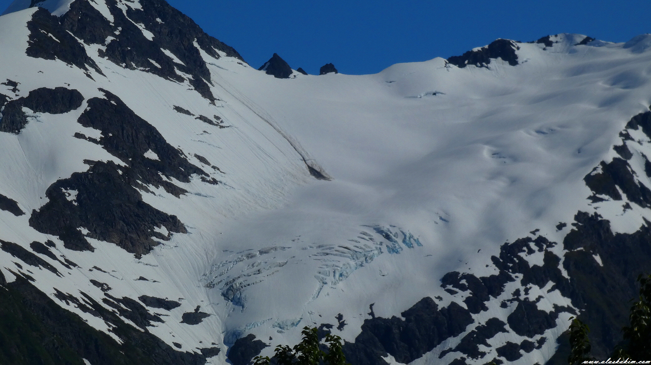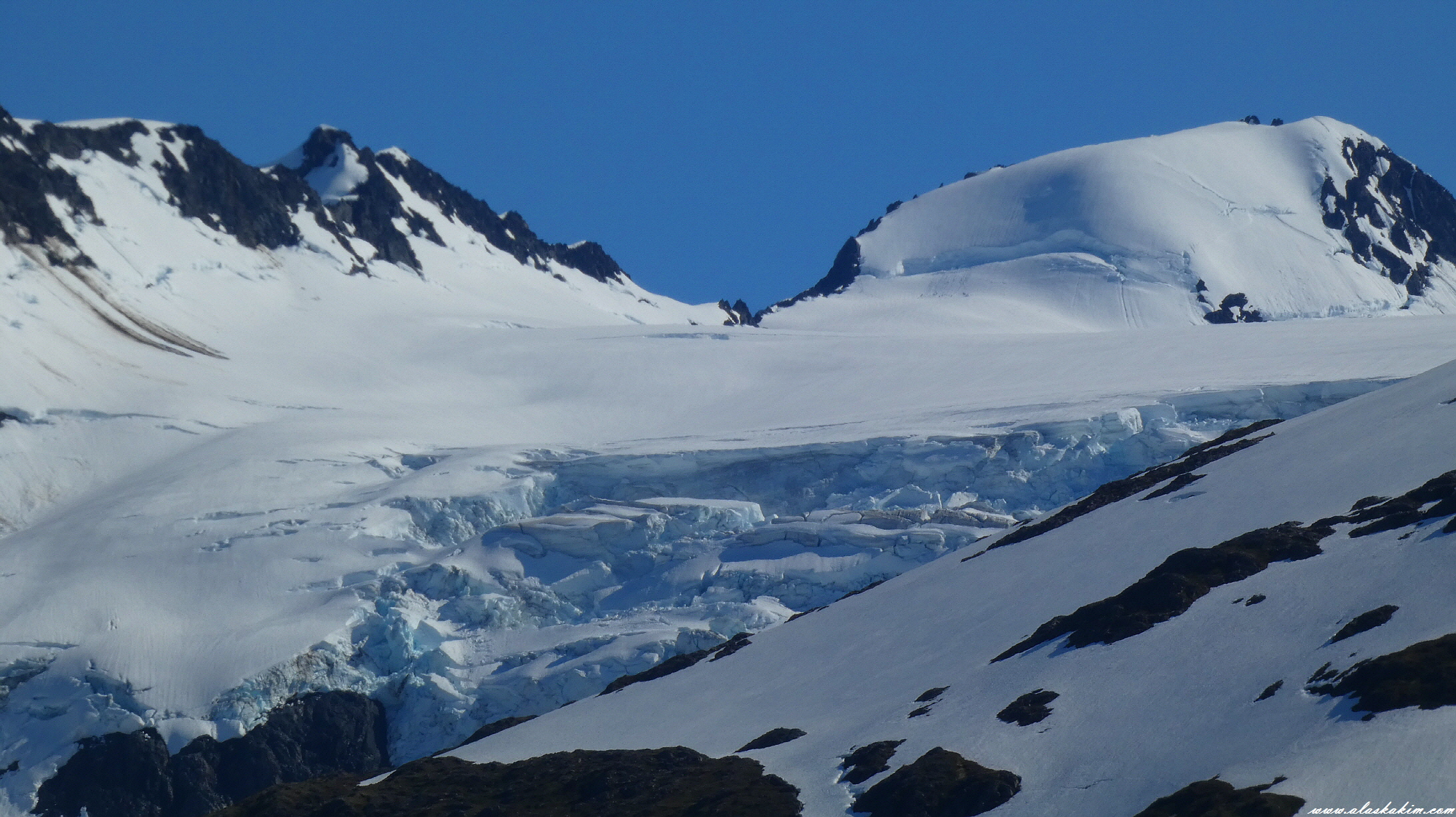 만년설이 녹으면서 빙하의 파르스름한 속살이 서서히 드러납니다.