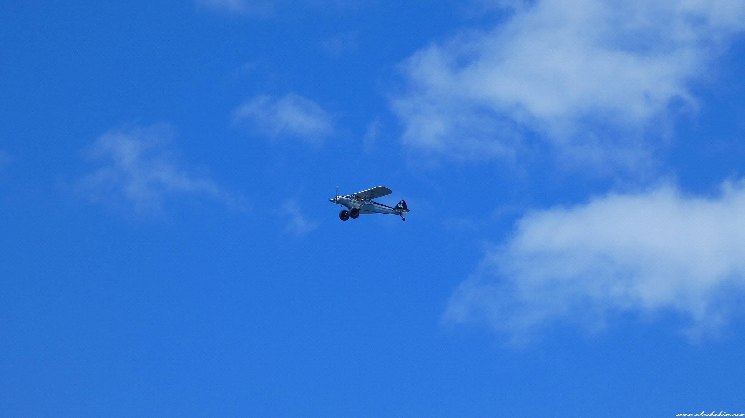 제 옆에서 날아오른 경비행기 한대가 하늘을 산책하고 있습니다.