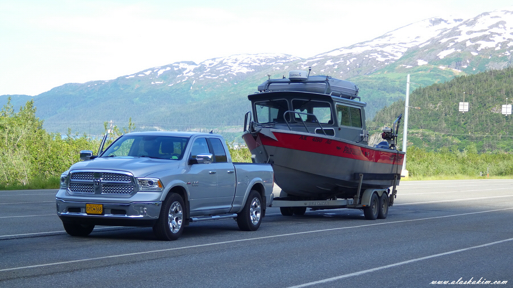 알래스카를 여행중인 RV 차량.
