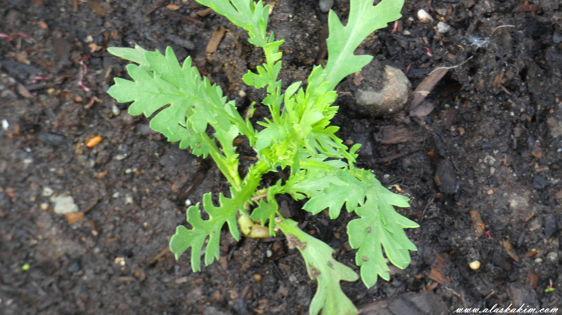상추를 뿌리다가 손가락에 묻은 쑥 갓 하나가 발아해 상추 밭에서