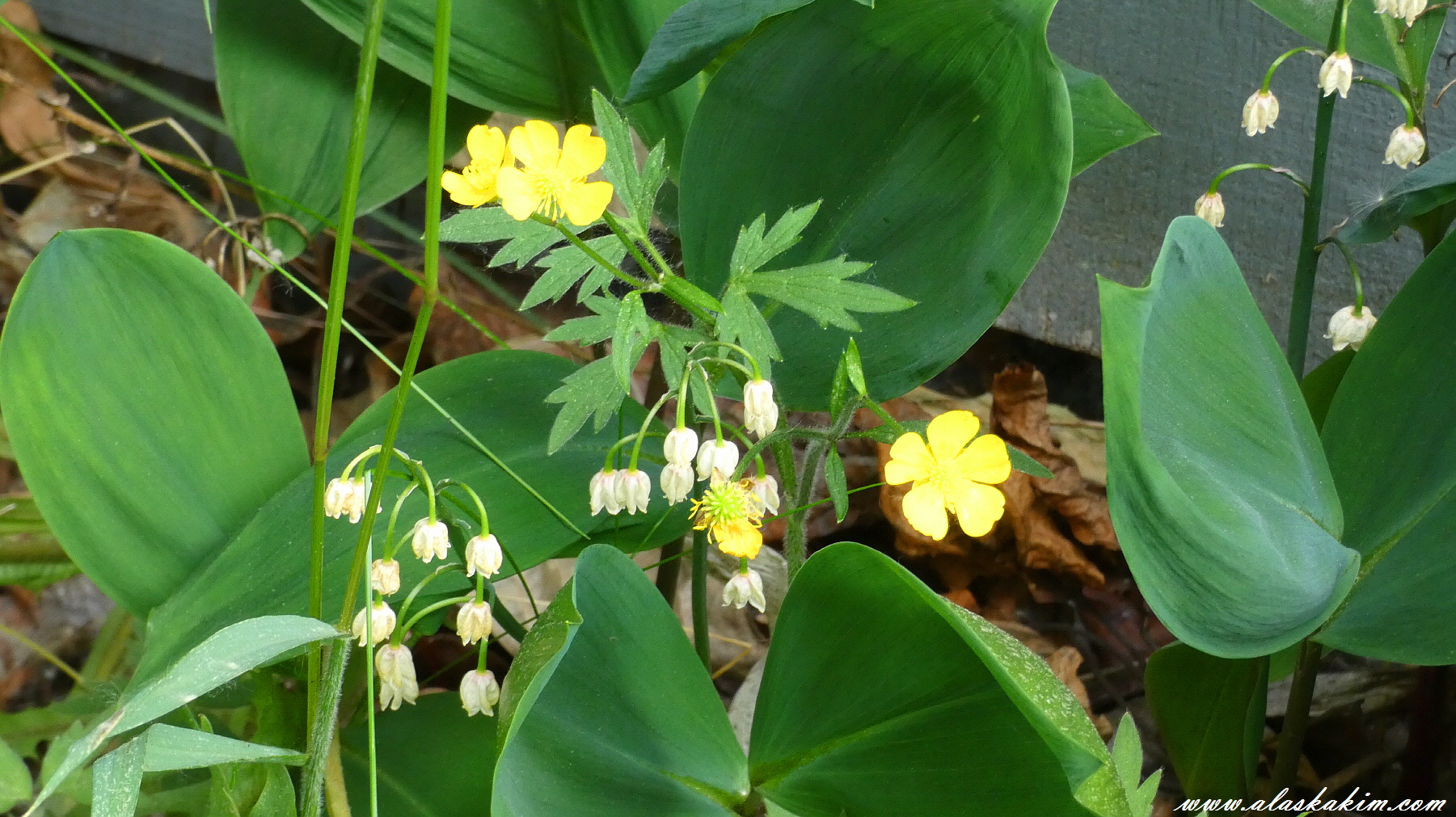 이름 모를 야생화들이 집 처마 밑에서 자라고 있습니다.