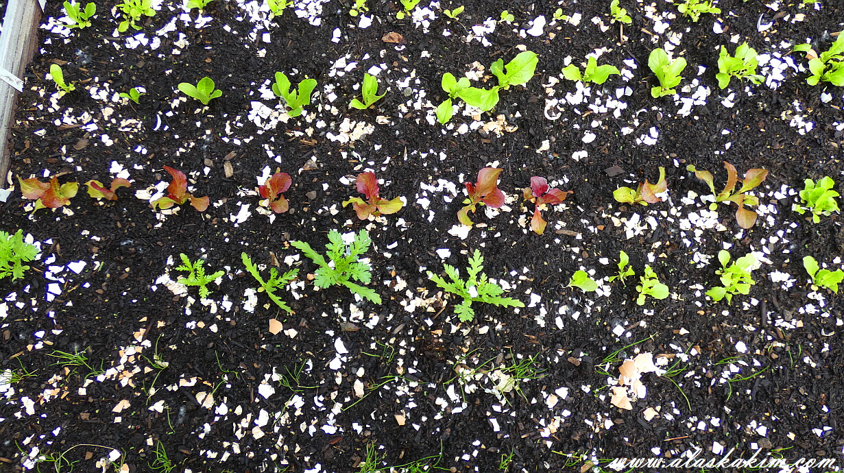 깻잎도 너무 늦게 심어 이제 막 자라고 있습니다.