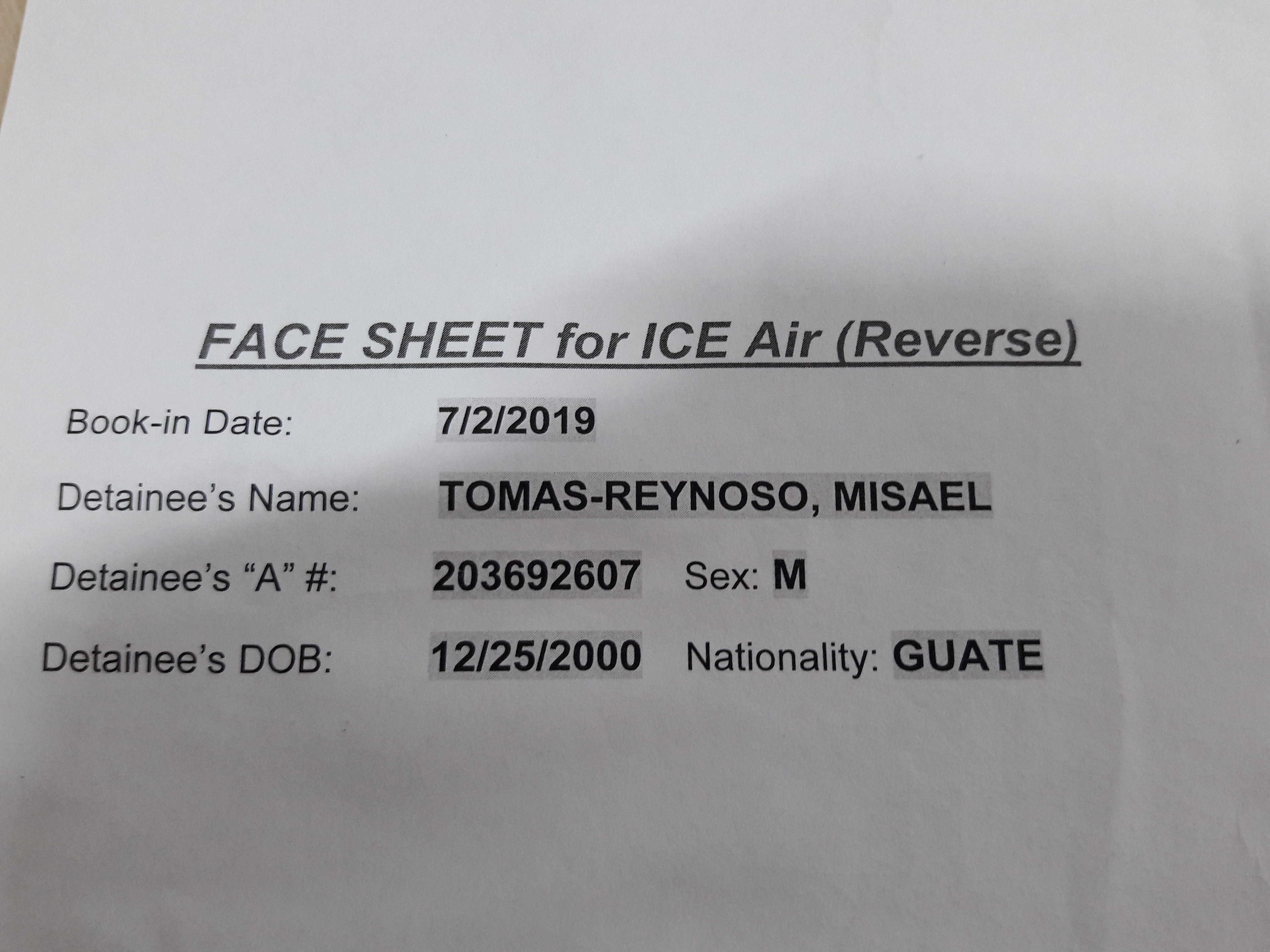 이름과 생년월일, 개인 사건파일 넘버, 그리고 해당 국가인 과테말라라고