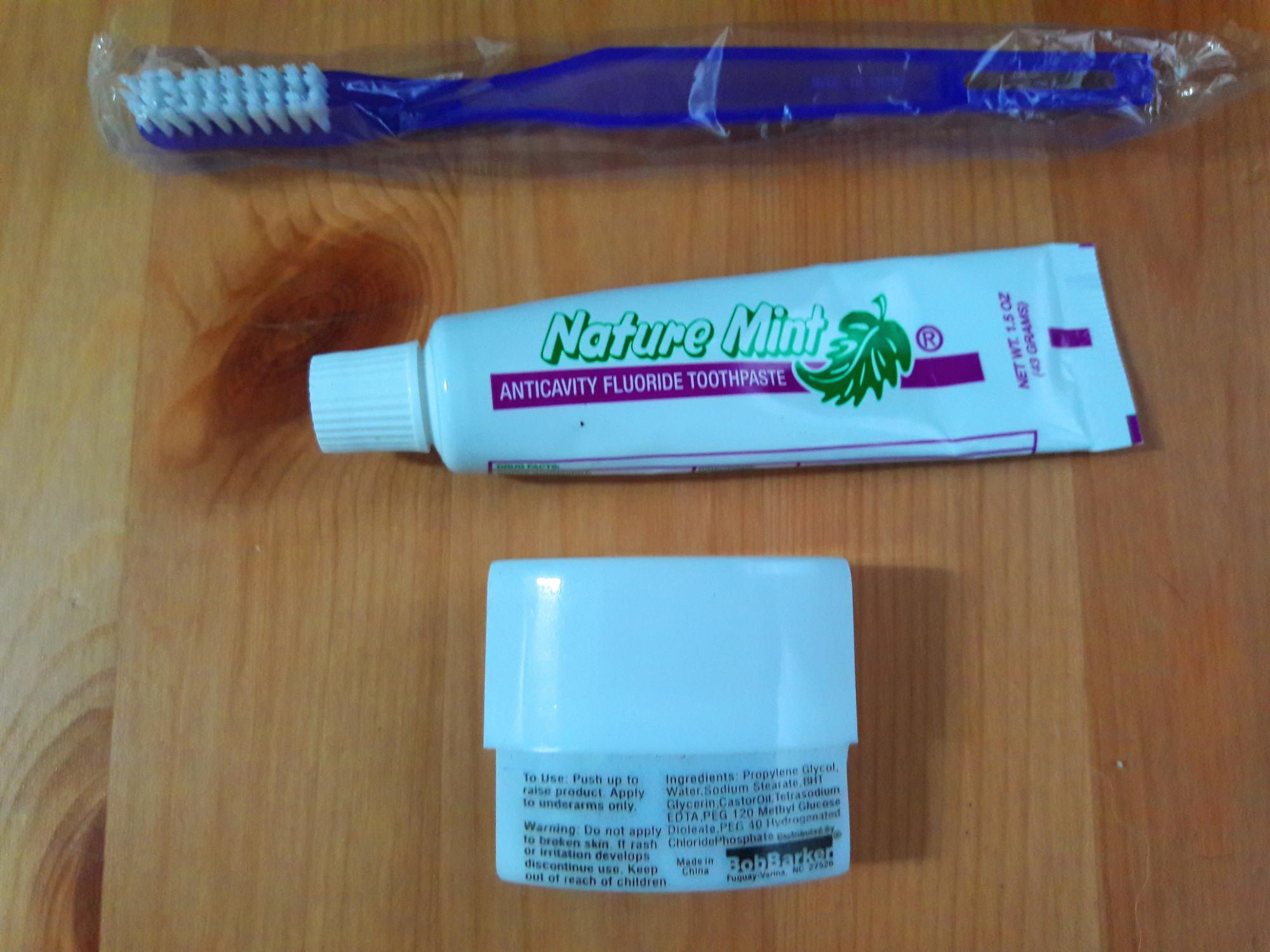 칫솔, 치약, 그리고, 다소 특이하게 겨드랑이에 냄새 제거 크림인데
