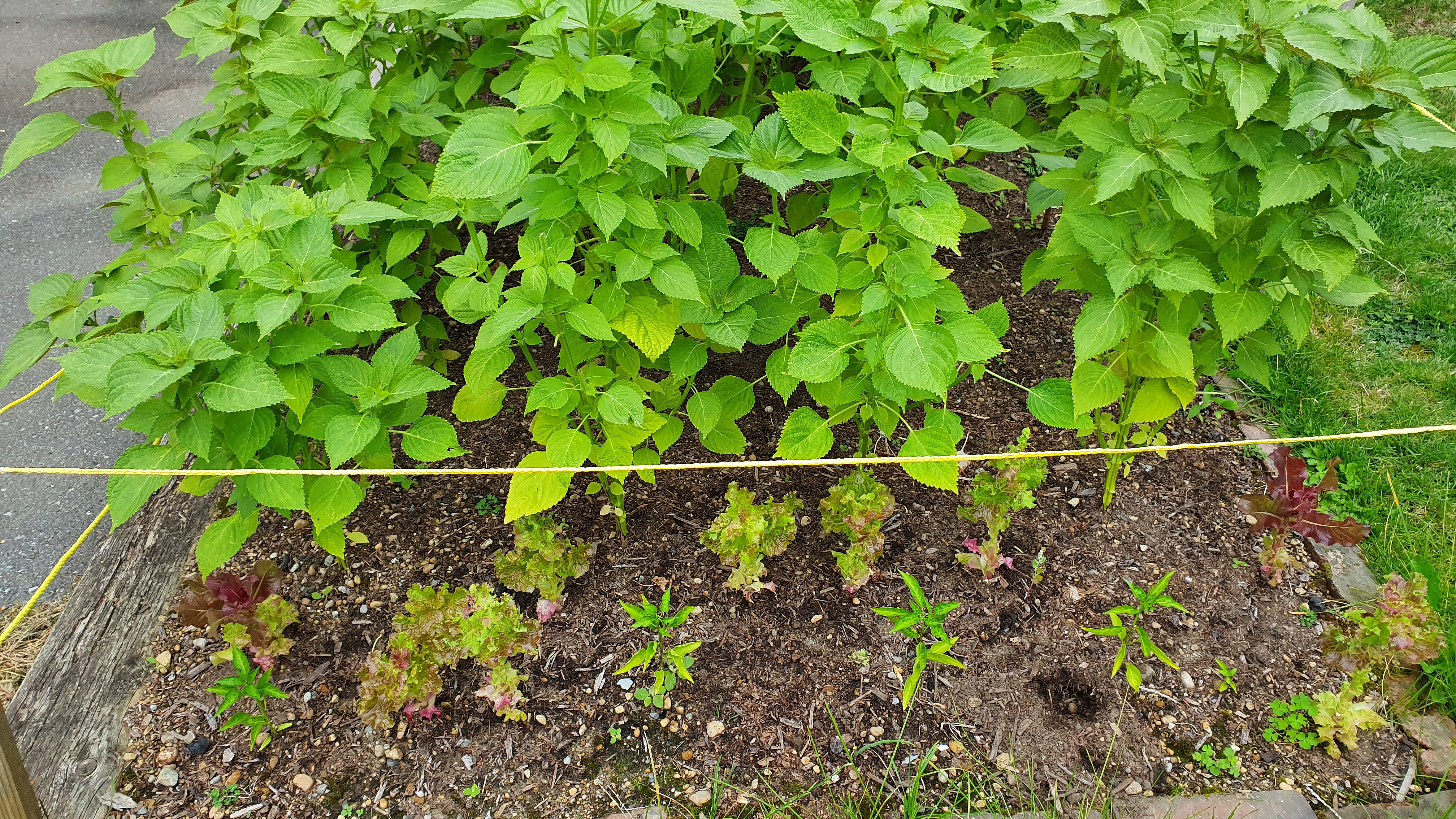 텃밭에서 씩씩하게 자라는 깻잎과 상추와 고추.