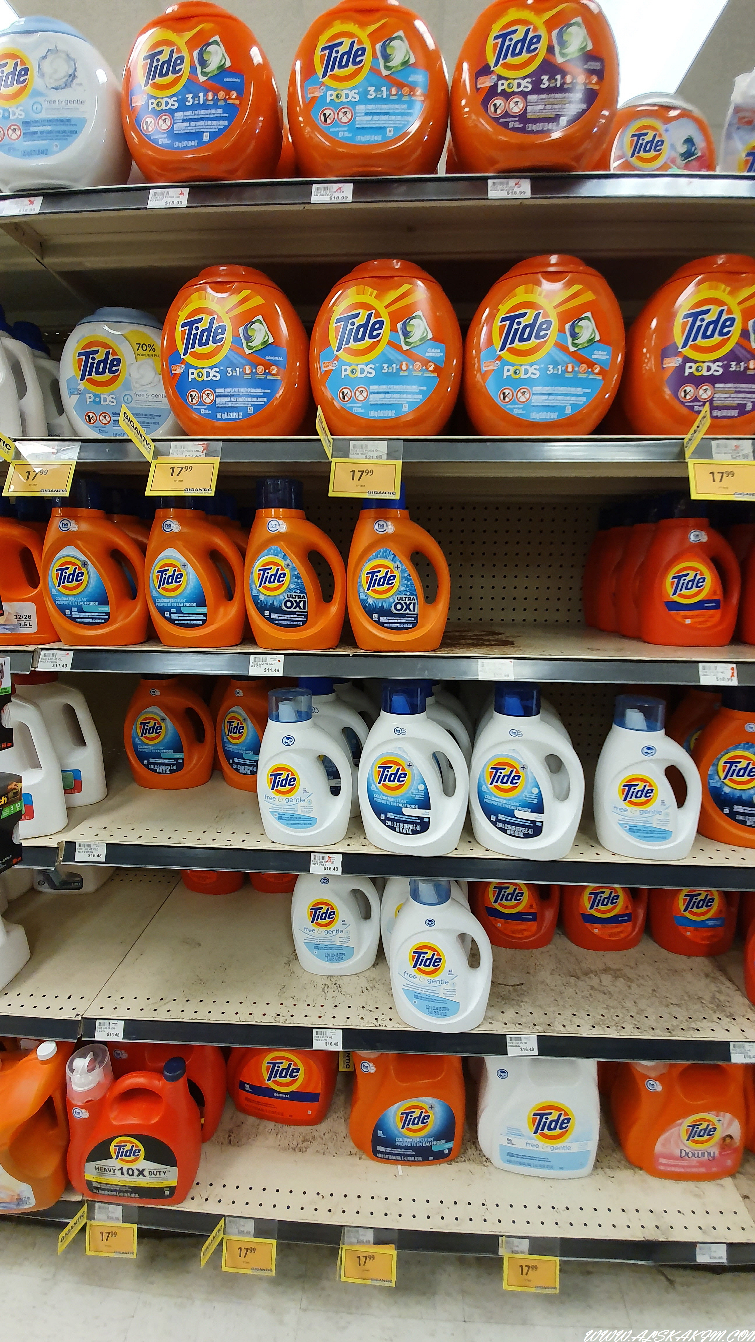 세제류와 휴지류 그리고, 육류 제품들과 가공식품및 과일과