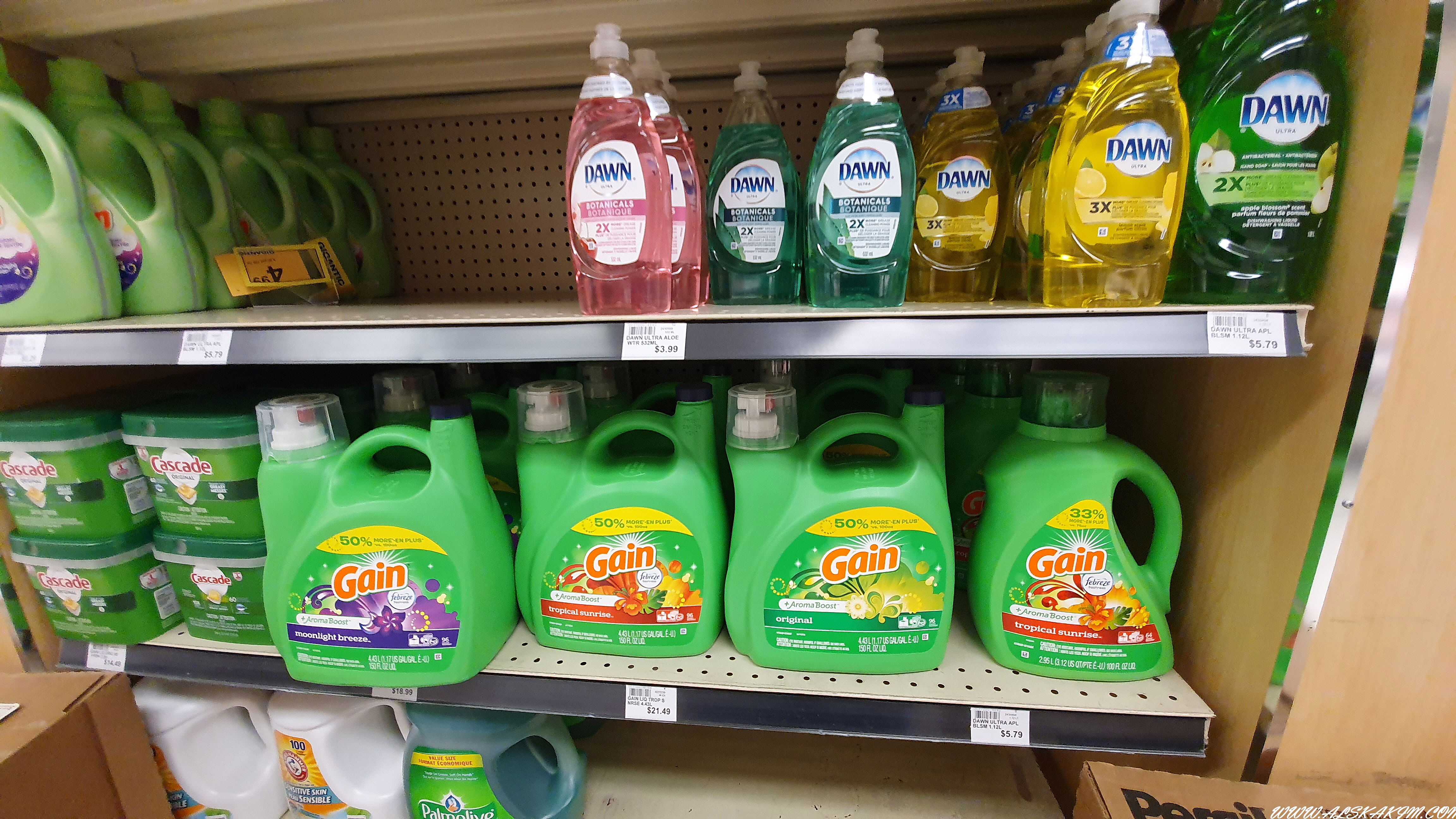 세제류와 휴지류 그리고, 육류 제품들과 가공식품및 과일과