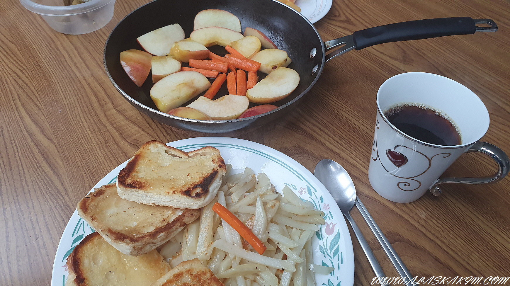 민박집에서 차려 준 아침 식사를 했는데 과일을 굽더군요.