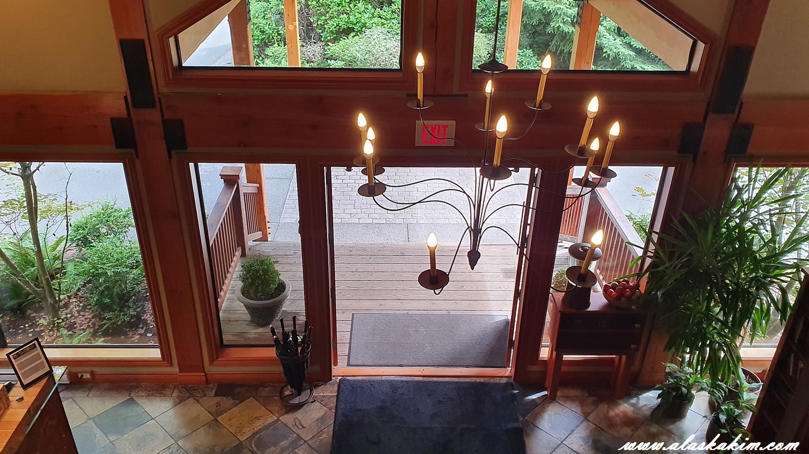 이층 레스토랑에서 내려다본 호텔 출입구입니다.