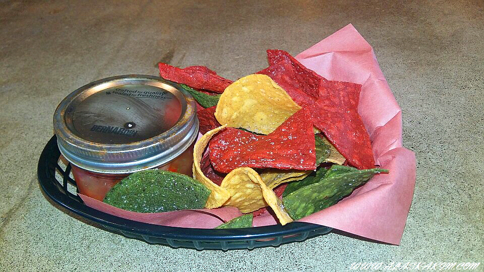 색깔도 다양한 칩이 살사 소스와 함께 나왔는데 가격은 6불입니다.
