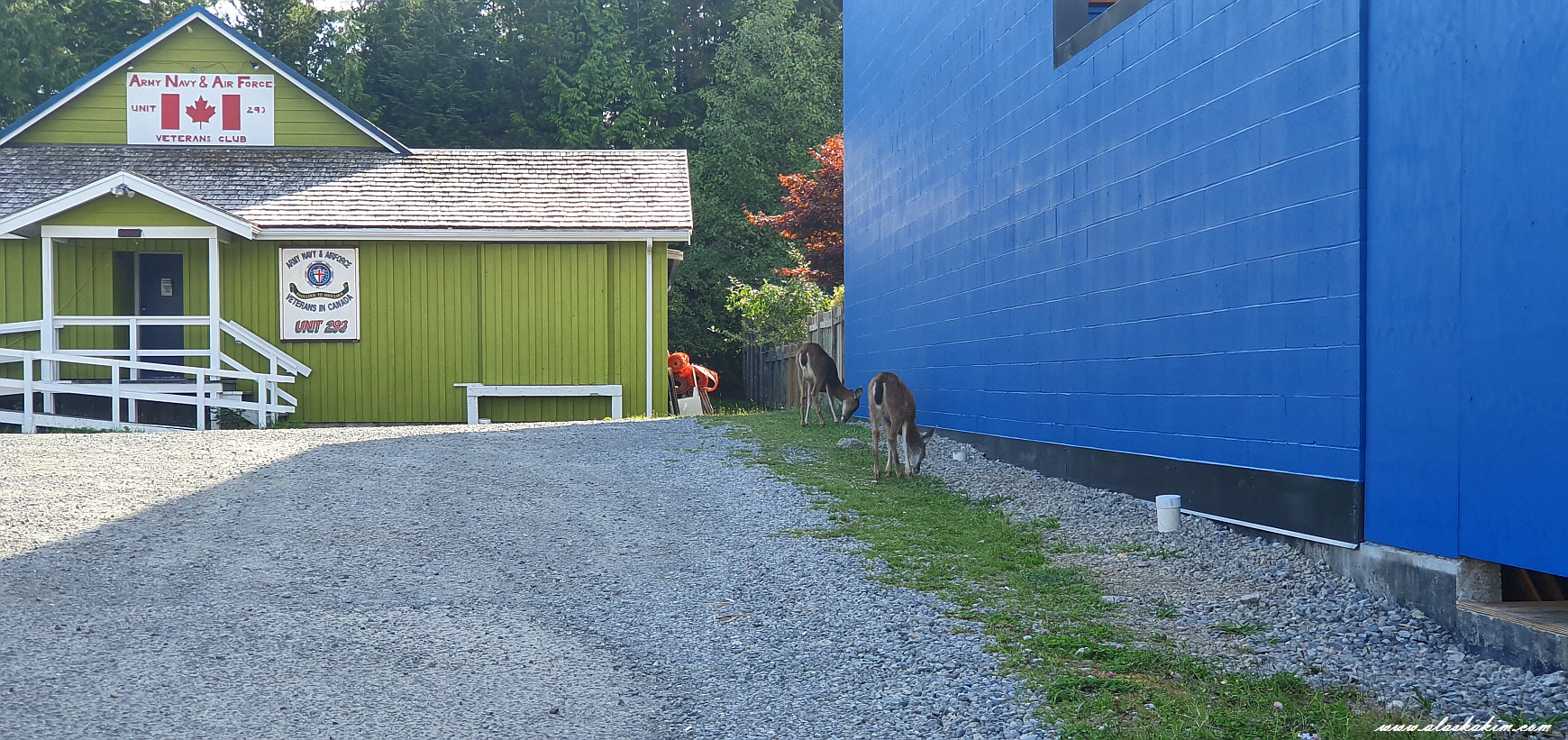 오후에 산책로를 갔는데 여기서 또, 그 모녀 사슴을 만났습니다.