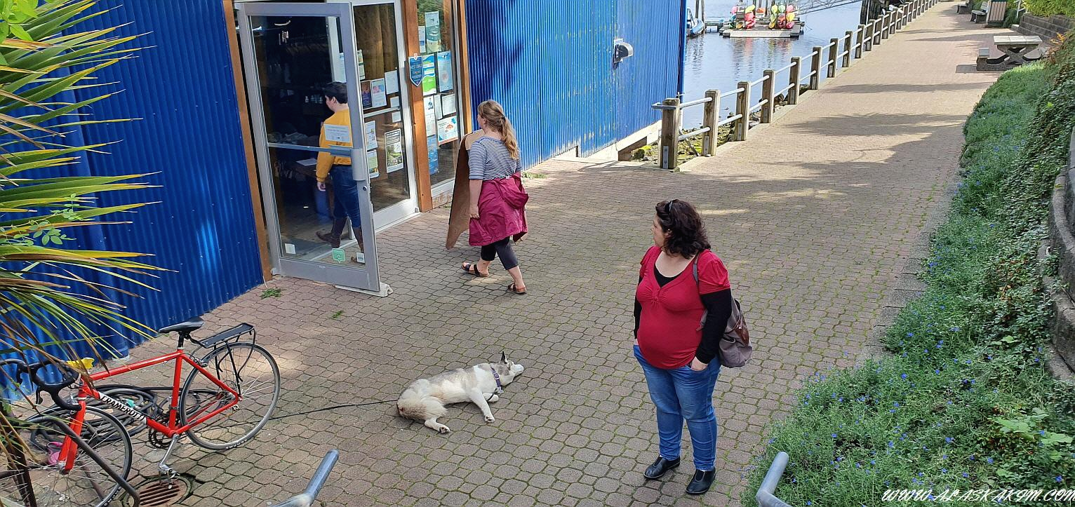 수족관 앞에는 허스키 한 마리가 팔자 좋게 눌어져