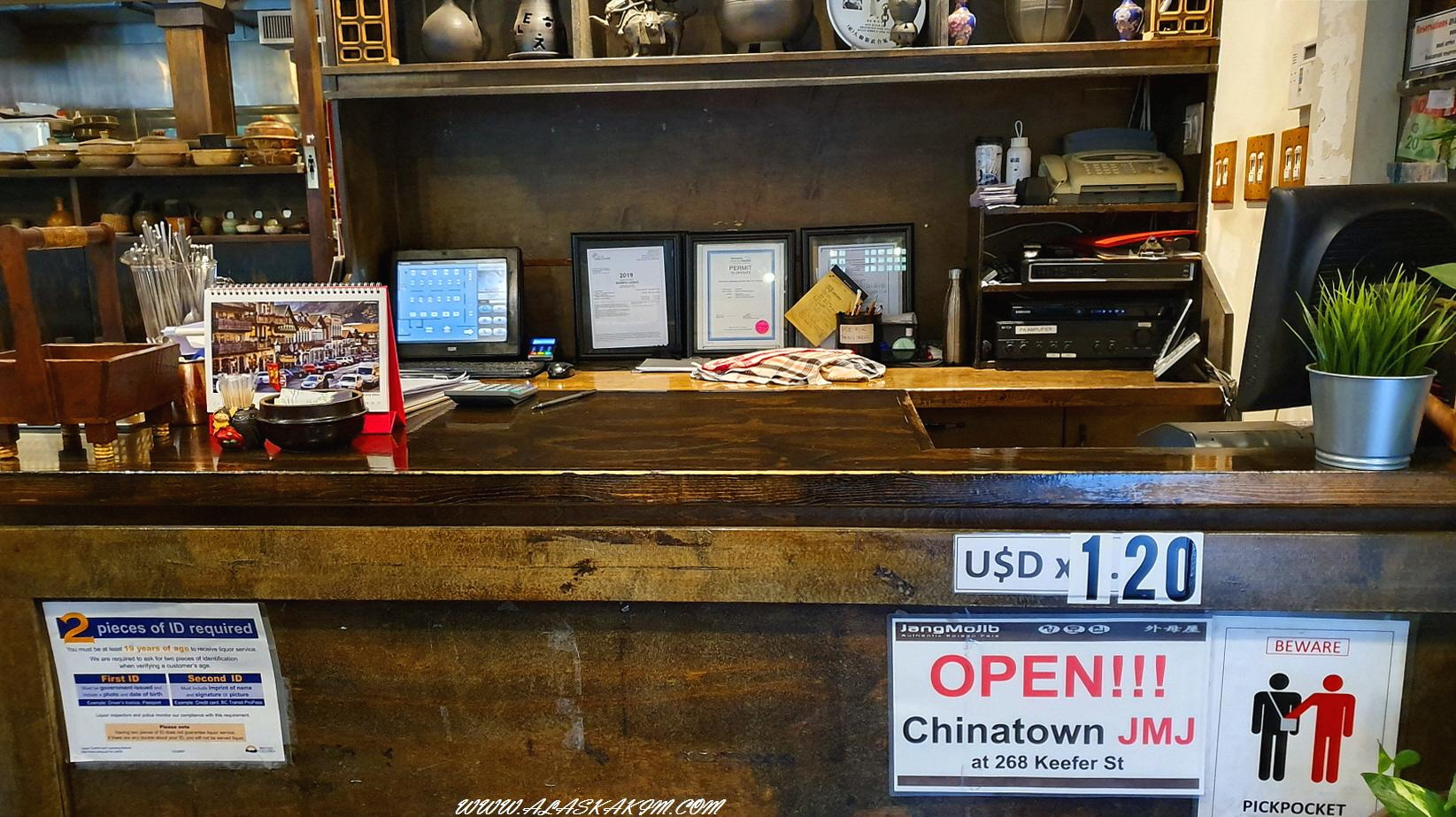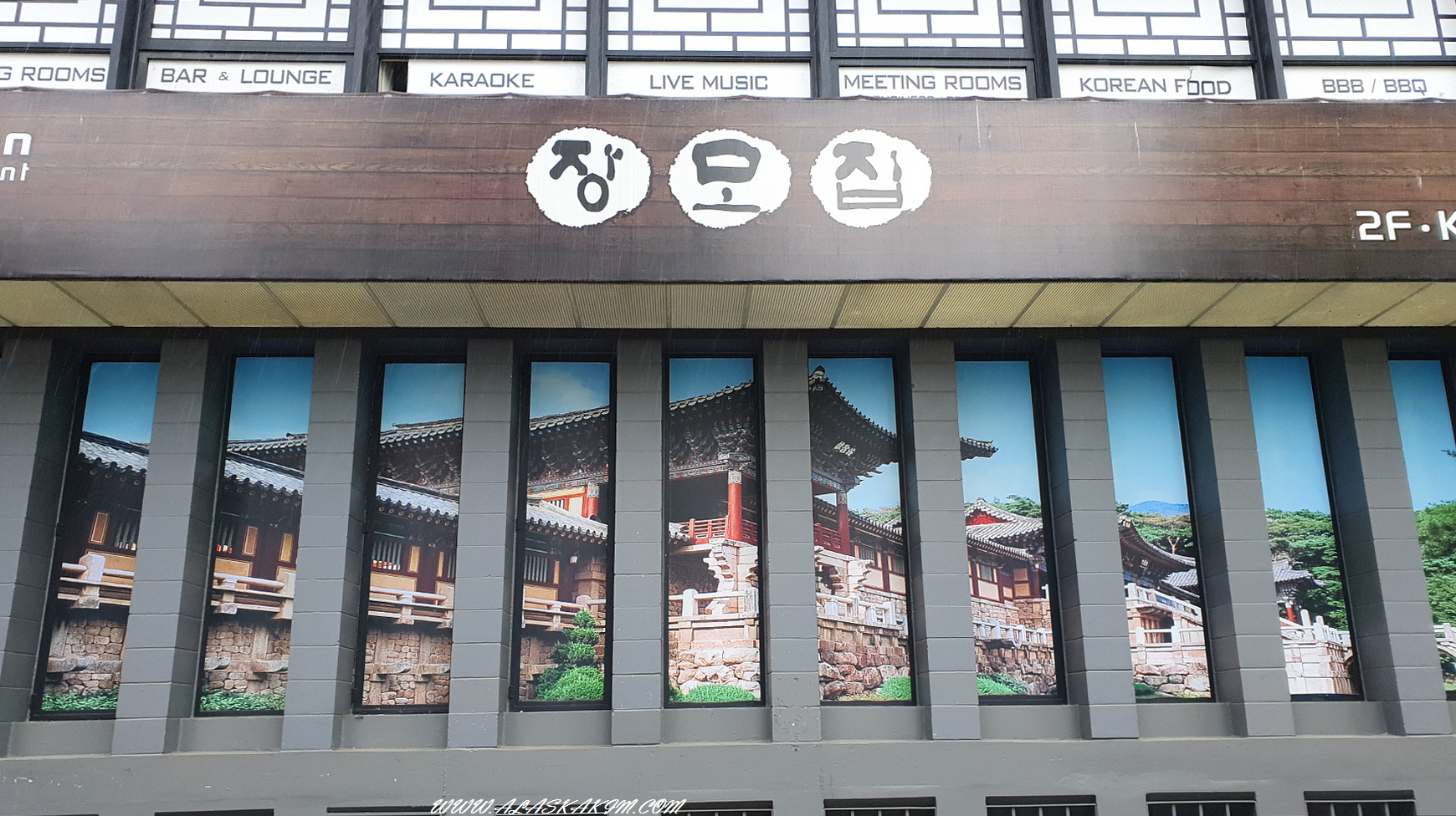 비 내리는 다운타운에 갔는데 장모님이라는 식당 간판이