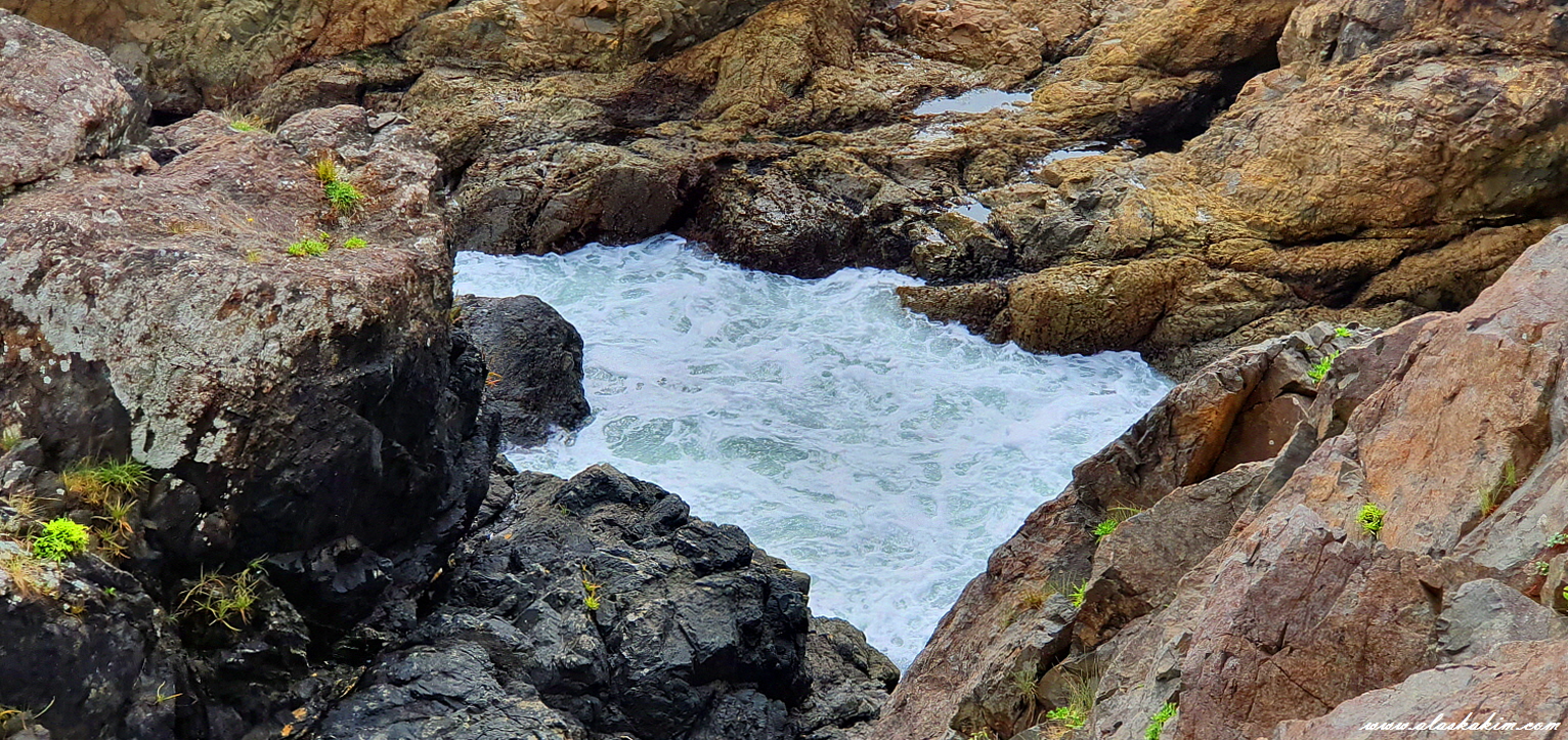 바위 사이로 들이치는 파도 소리가 아주 리얼합니다.