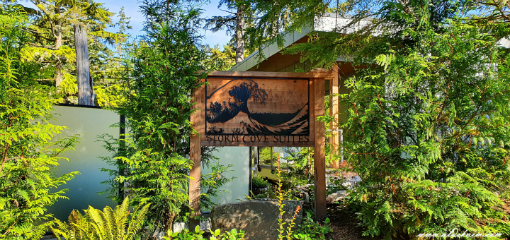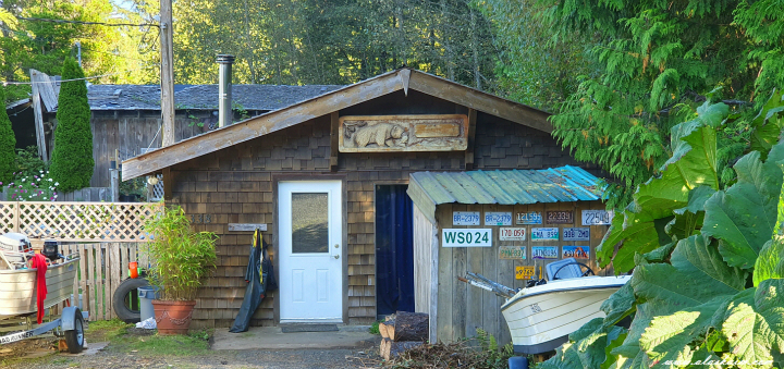 곰이 연어를 물고 있는 목공예 간판을 여기서 만나네요.