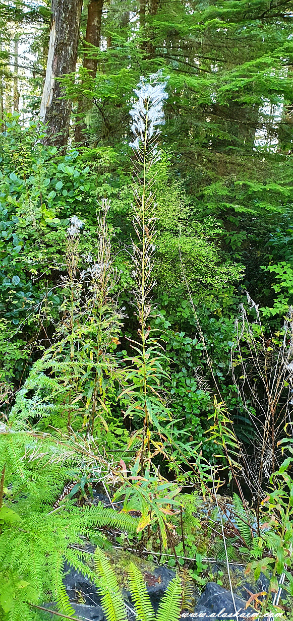 Fireweed 가 제 키를 훌쩍 넘게 자라있습니다.
