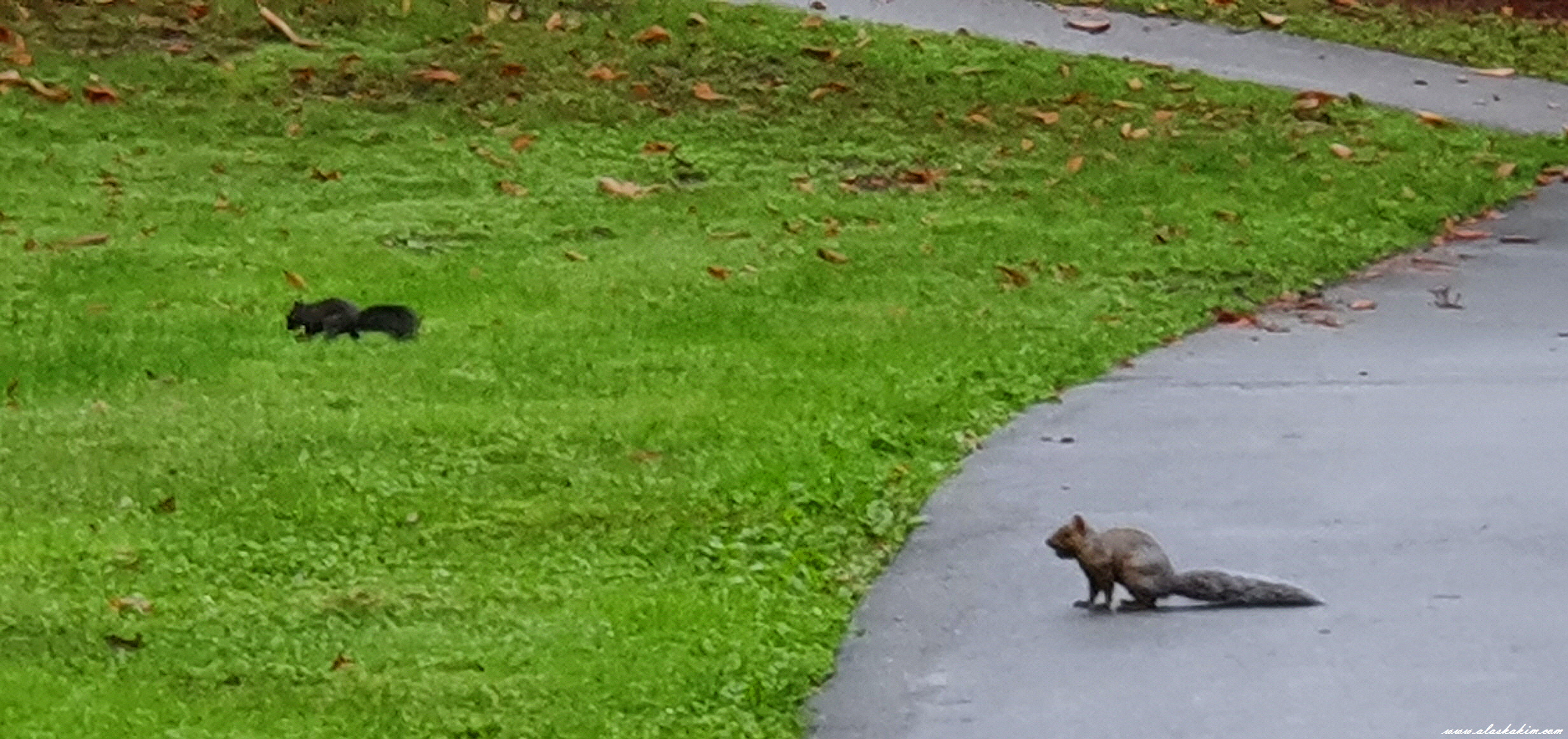 가을비가 내리는 날, 작은 공원에 들렀는데 청설모 한 마리가