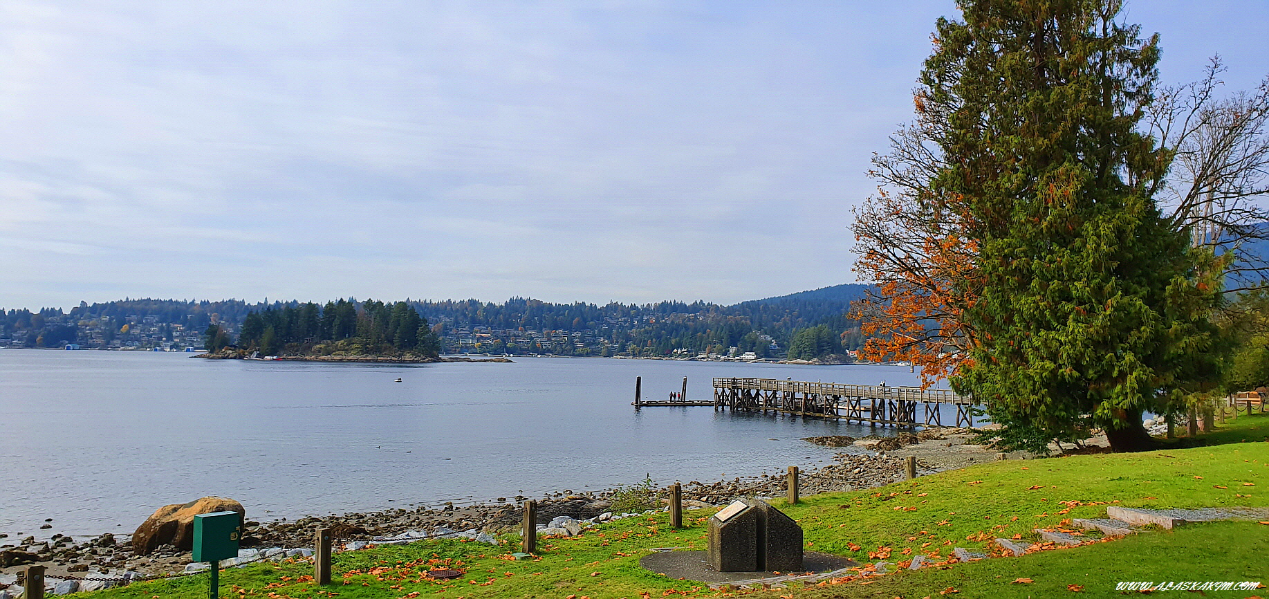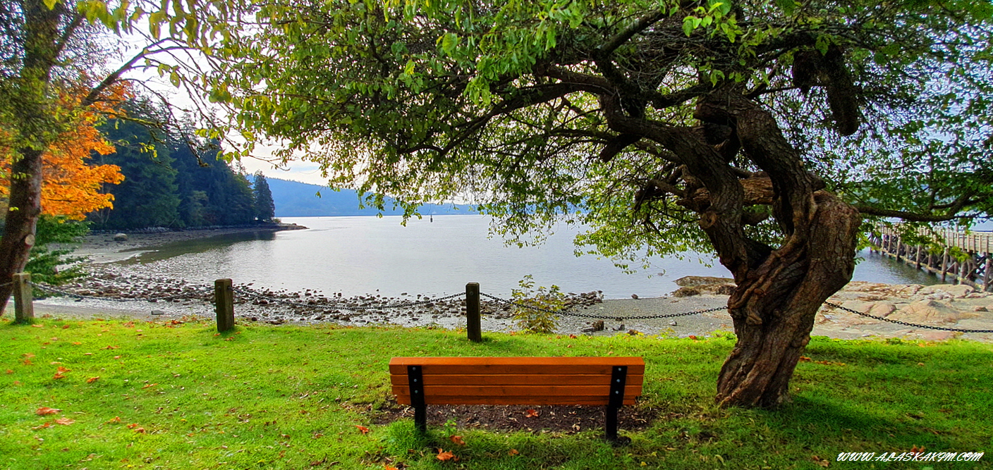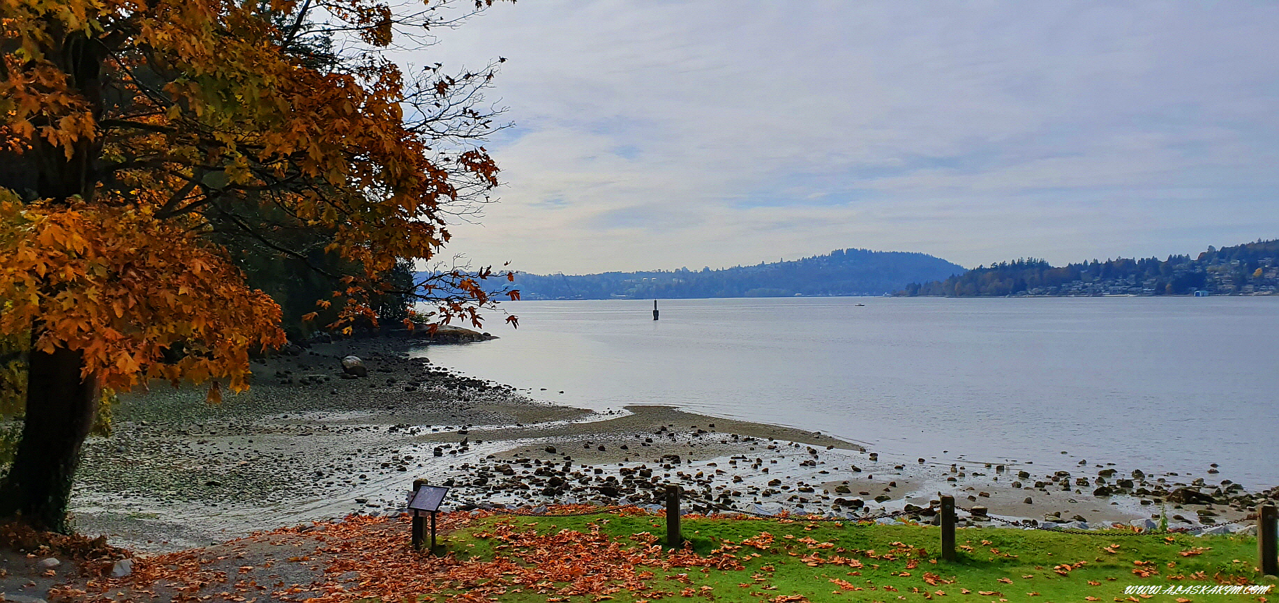 낙엽이 쌓여 더한층 운치를 더해주는 바닷가 공원을
