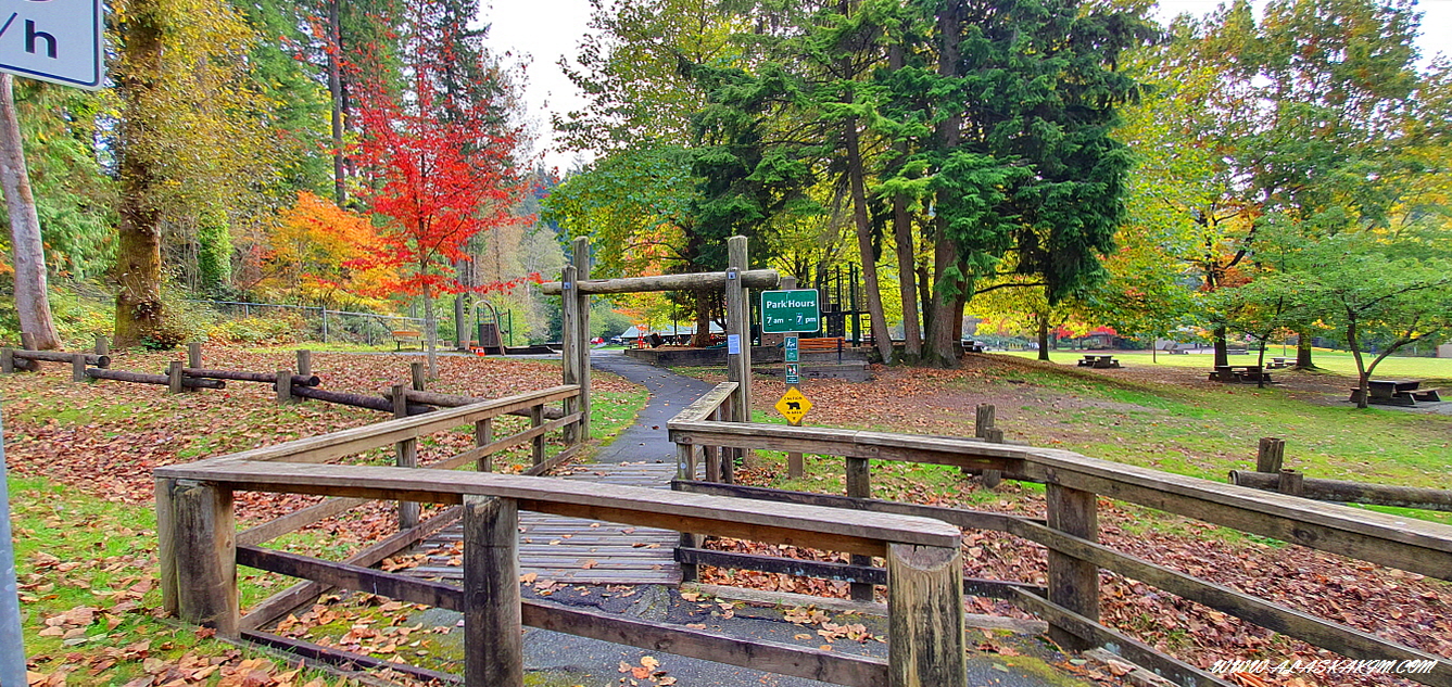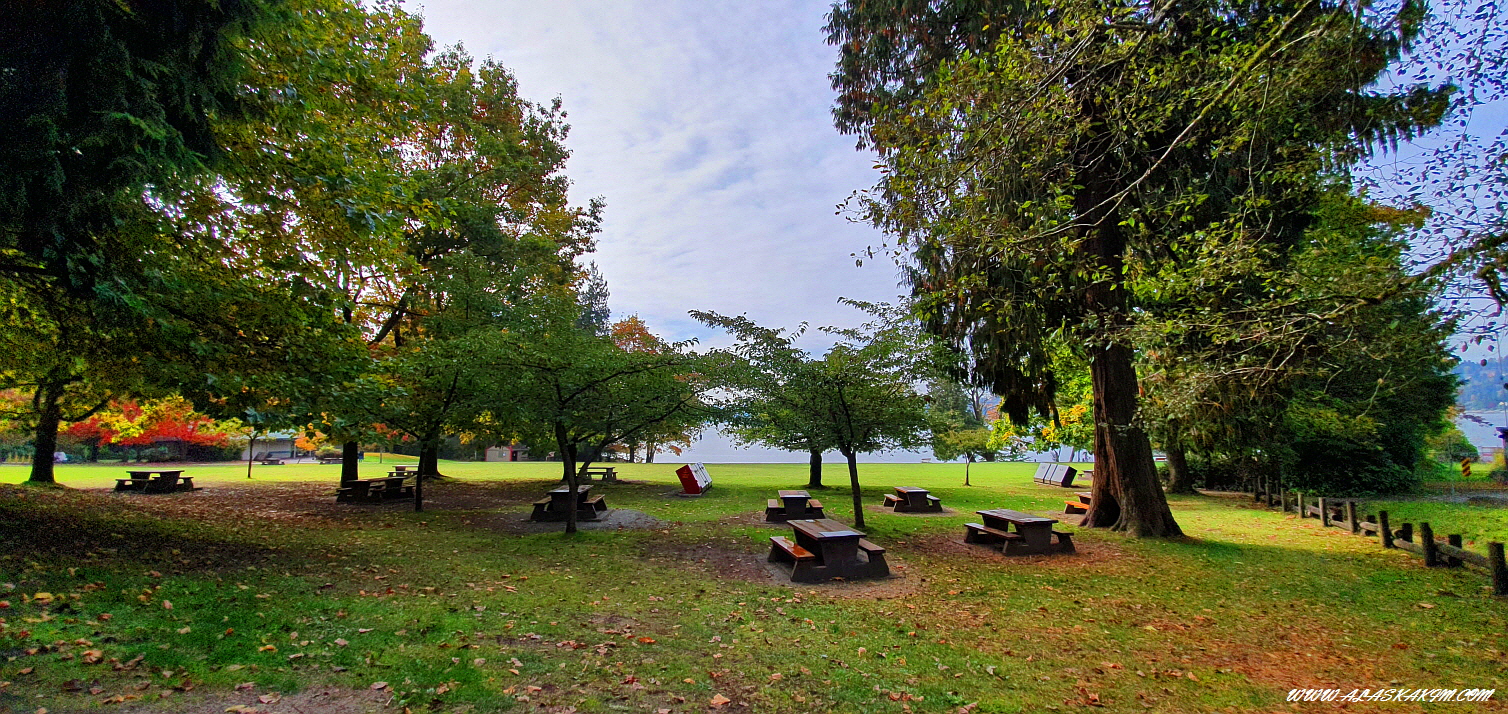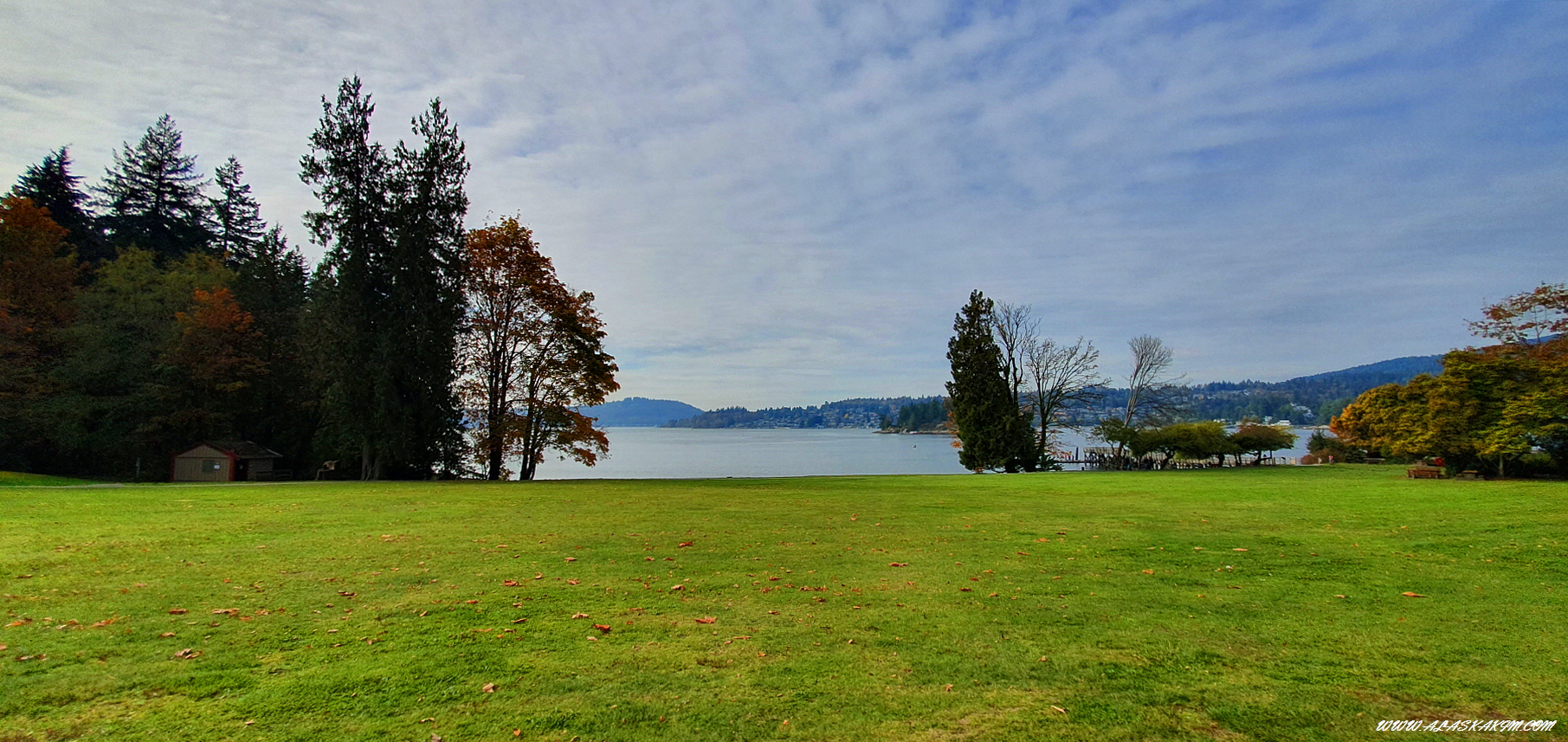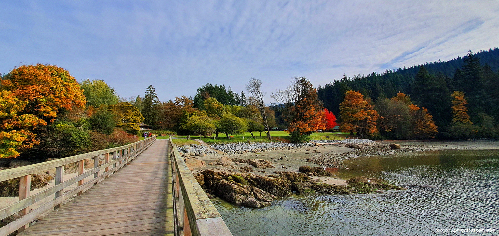낙엽이 쌓여 더한층 운치를 더해주는 바닷가 공원을