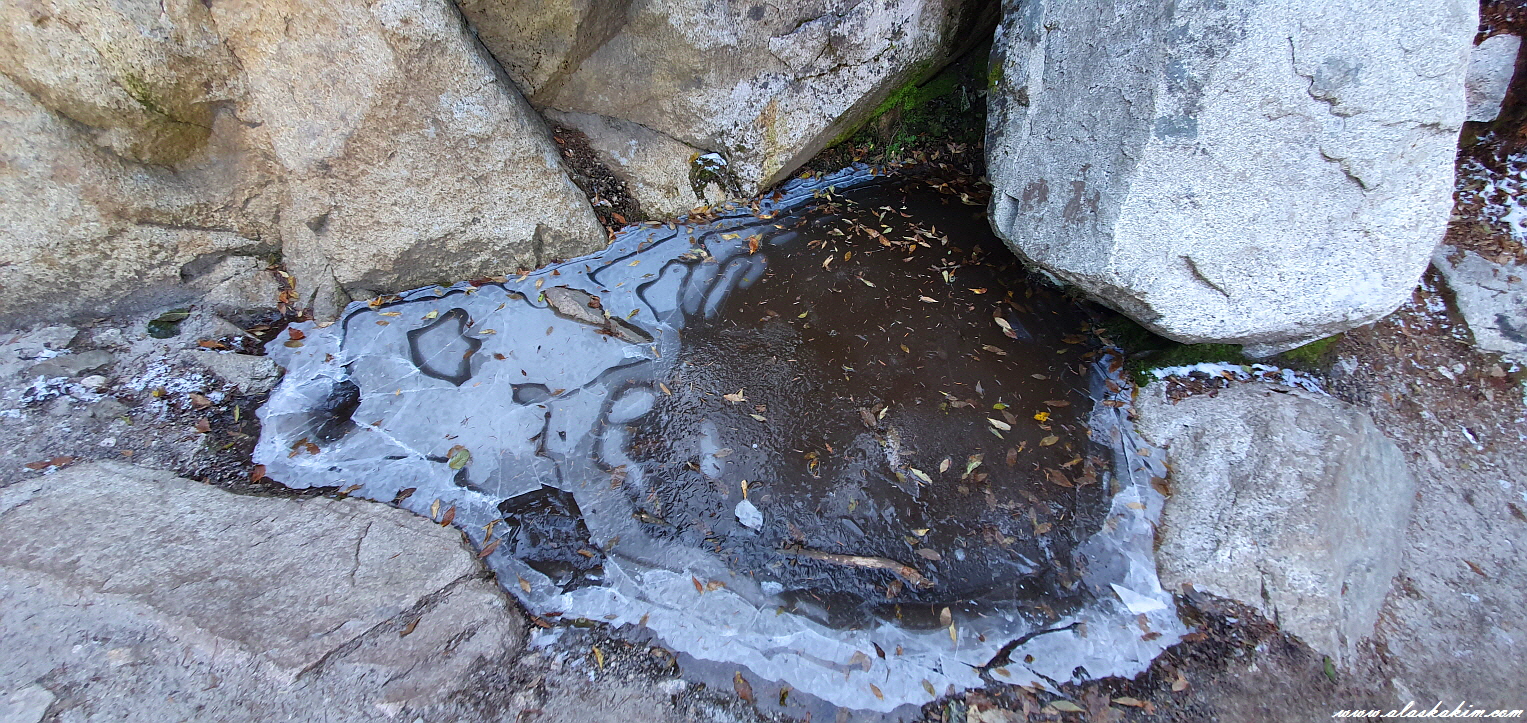 등산로 입구부터 고드름이 곳곳에 맺혀있고, 살얼음들이