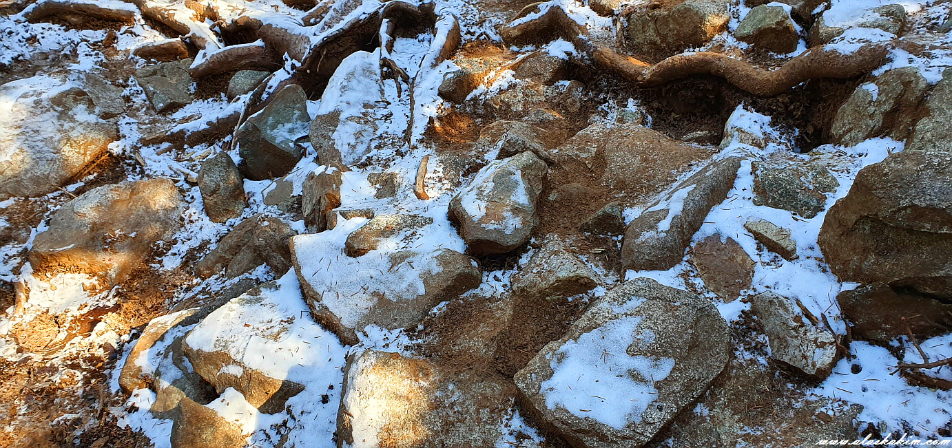 올라가는 길에는 모두 바위로 되어 있는데 ,돌들이 얼어있어
